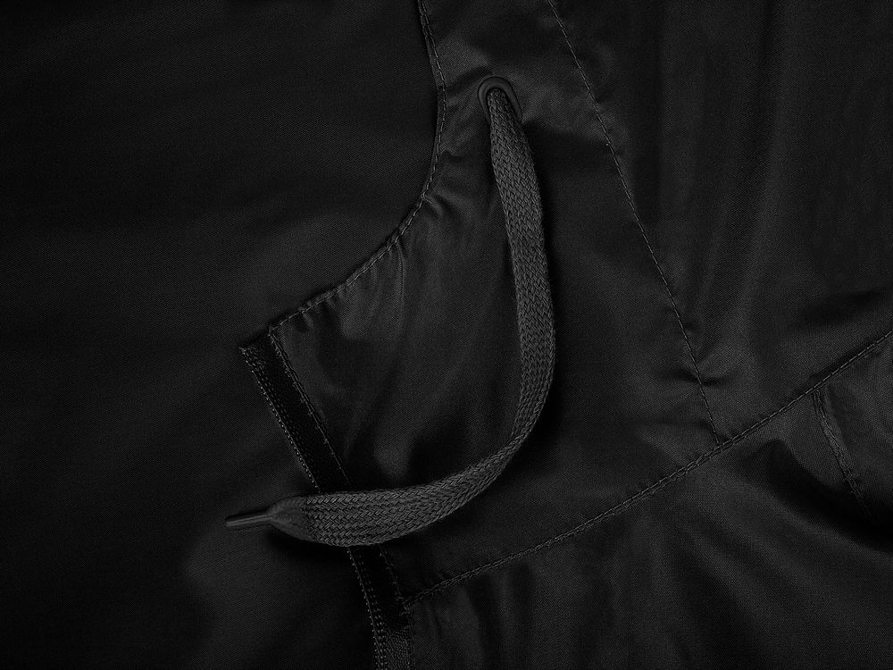 Плащ-дождевик на молнии с капюшоном из ткани таффета с полиуретановой пропиткой для защиты от сильного дождя.