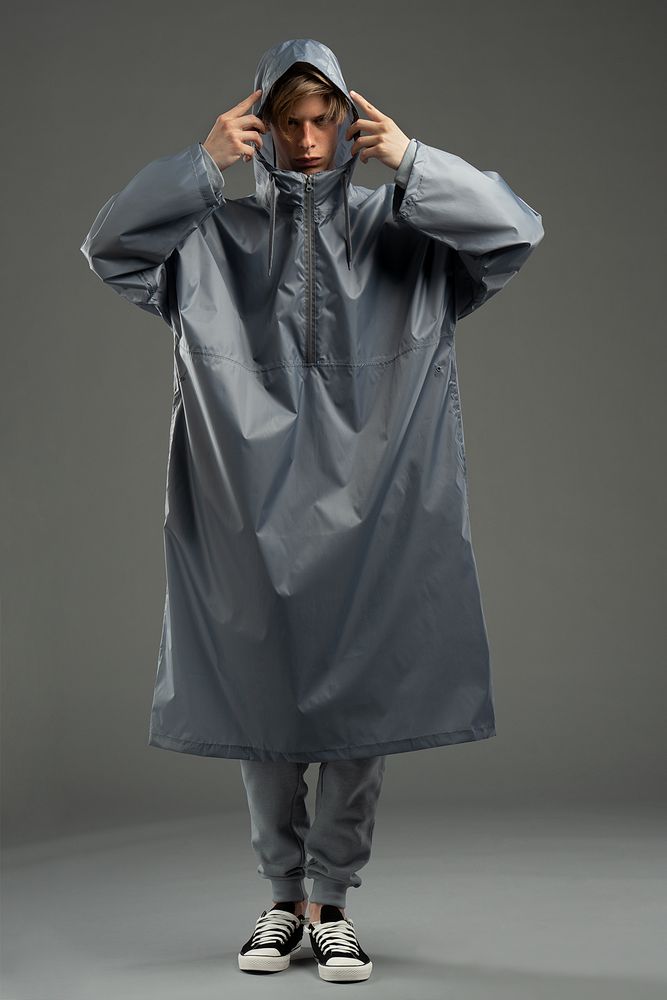 Дождевик-анорак с капюшоном из ткани таффета с полиуретановой пропиткой для защиты от сильного дождя.