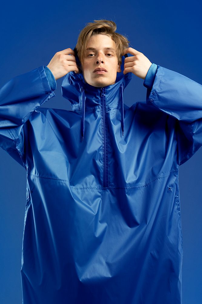 Дождевик-анорак с капюшоном из ткани таффета с полиуретановой пропиткой для защиты от сильного дождя.