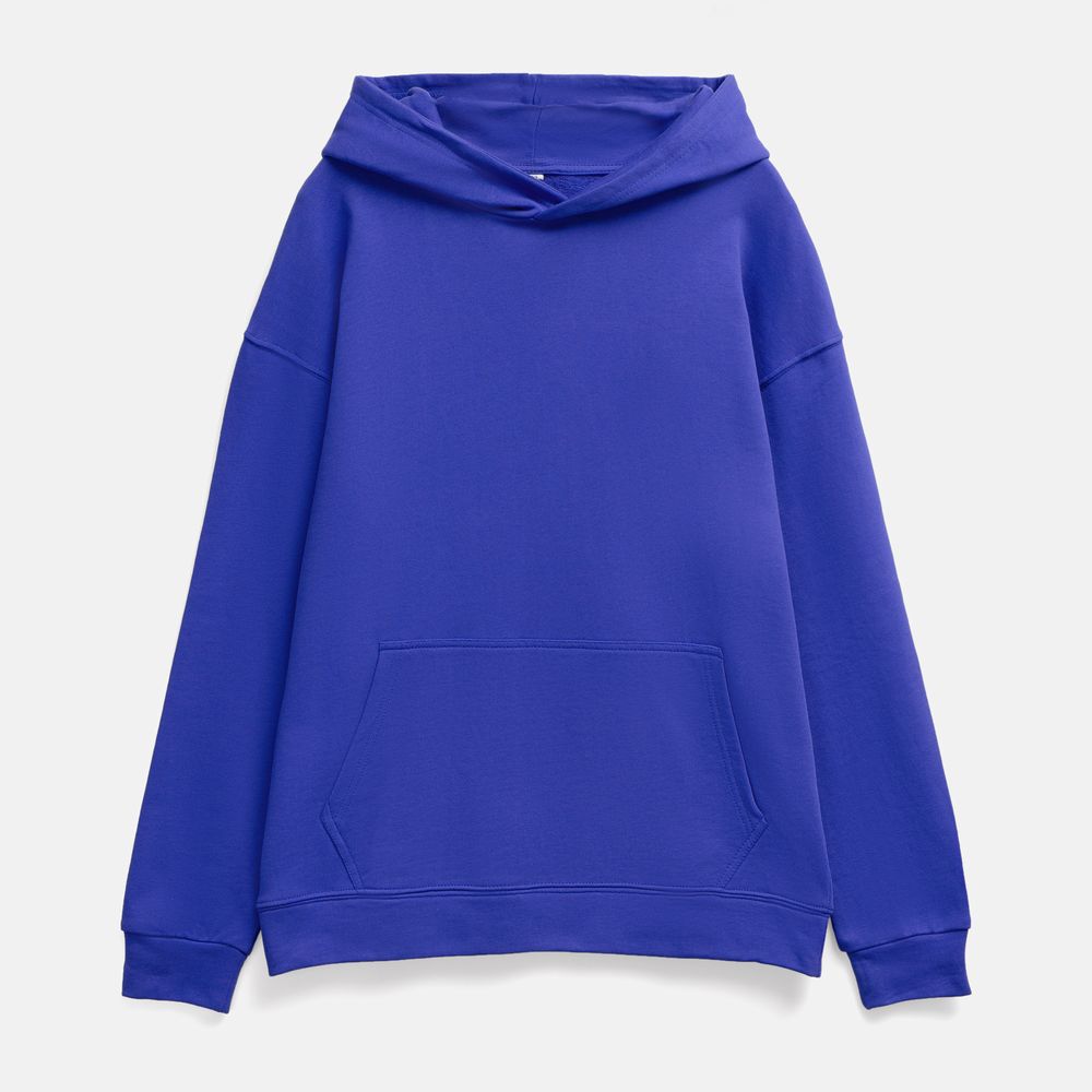 Худи унисекс со спущенным плечом и карманом-кенгуру расслабленного силуэта.
