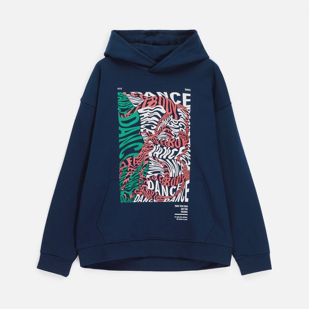 Худи унисекс со спущенным плечом и карманом-кенгуру расслабленного силуэта.
