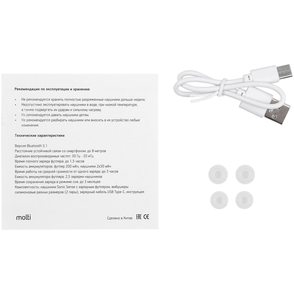 Перед использованием наушники и футляр-базу необходимо зарядить! Для первого сопряжения обоих включенных наушников между собой нужно подержать пальцы порядка 2 секунд на корпусах наушников, затем подождать не менее 4–5 секунд перед поиском и выбором устройства в списке bluetooth-устройств вашего смартфона. Если подсоединился только один наушник — необходимо удалить/забыть данное сопряжение в списке телефона, выключить наушники, затем их включить и через 5 секунд повторить соединение.