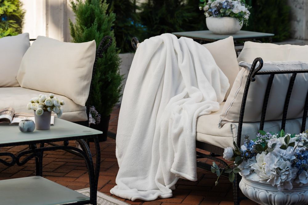 Плед Plush пригодится также летними вечерами на открытых кафе и верандах.