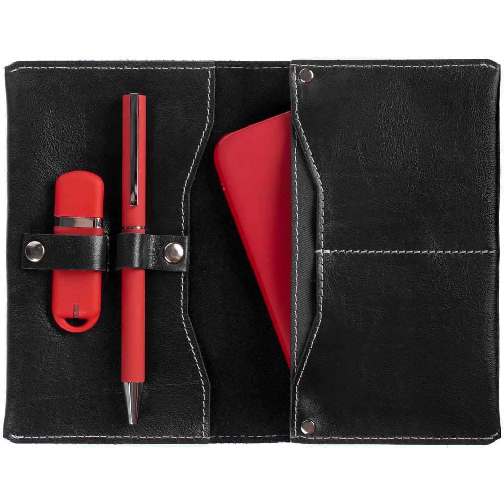 органайзер - натуральная кожа; аккумулятор - пластик, покрытие софт-тач; флешка - пластик, покрытие софт-тач; ручка - металл, покрытие софт-тач