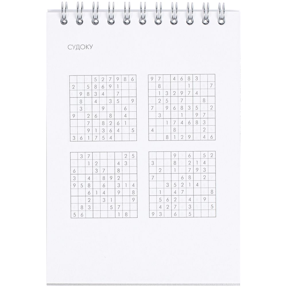 Суровая обложка в стиле индастриал скрывает весьма нестандартное содержание. Внутри — страницы, разлинованные разными способами, чистые листы и классический набор «бумажных» игр: от морского боя до судоку, а также афоризмы на тему труда.
