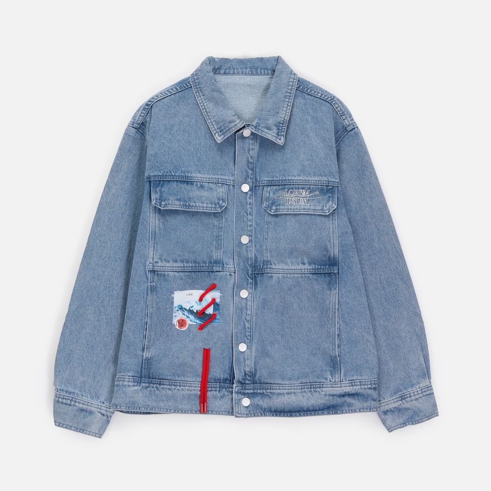Джинсовая куртка унисекс на кнопках свободной посадки.