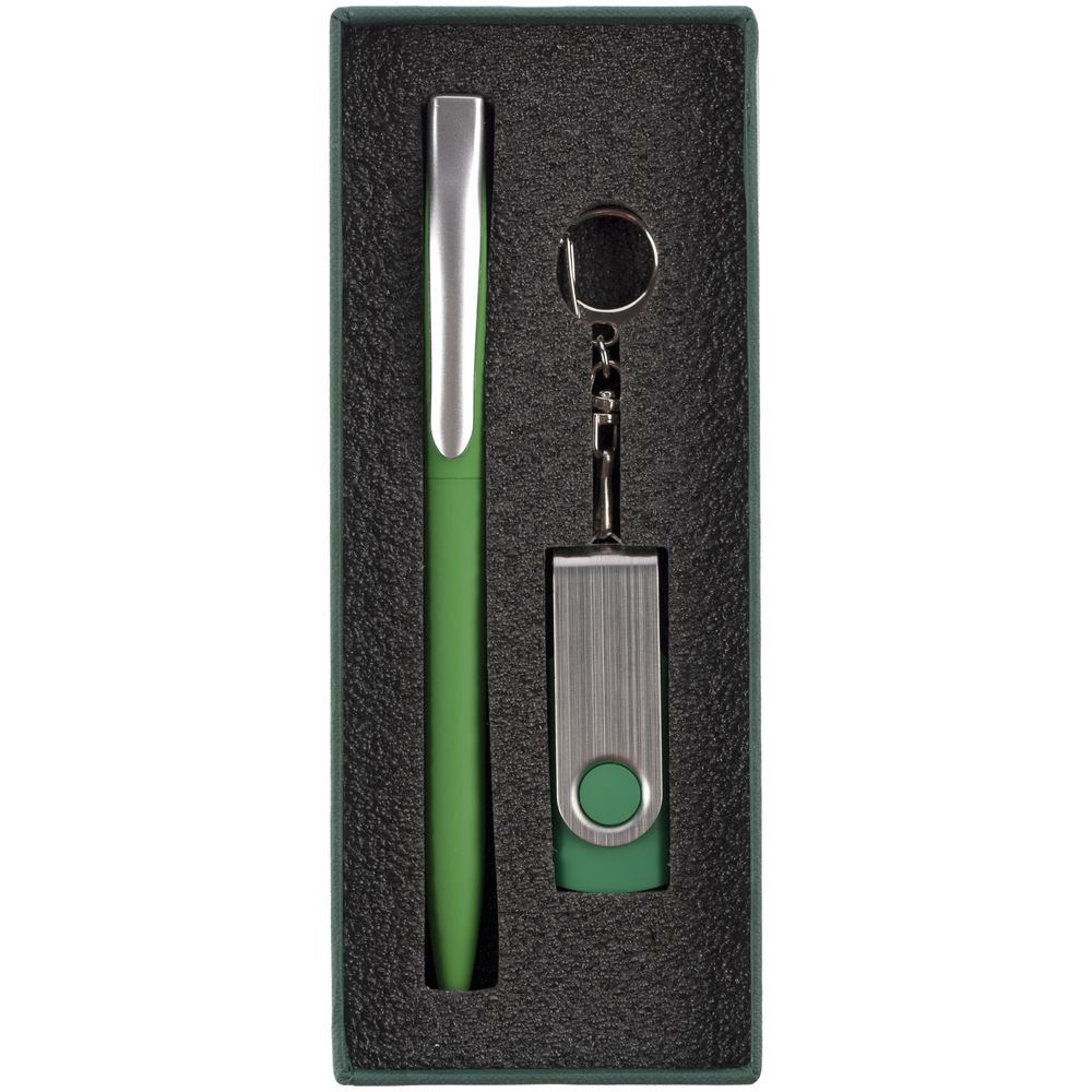 флешка - металл, пластик, покрытие софт-тач; ручка - пластик, покрытие софт-тач; коробка - переплетный картон