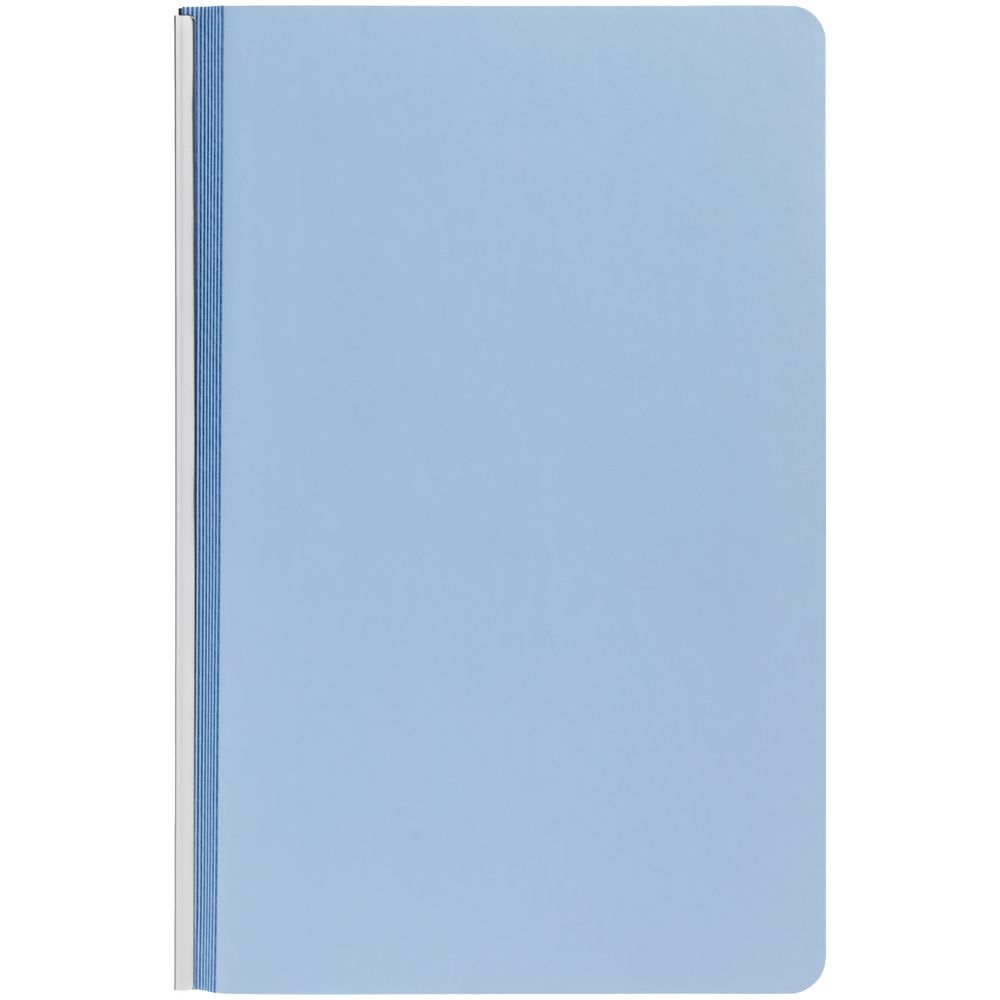 Ежедневник с гибкой обложкой и металлическим корешком, выполнен из материала Soft Touch, голубой JJ, дополнен серебристым обрезом блока и ляссе.