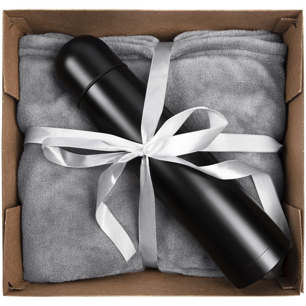 термос - нержавеющая сталь, корпус; пластик, крышка; плед - полиэстер 100%, длинноворсный флис, 220 г/м²; коробка - микрогофрокартон