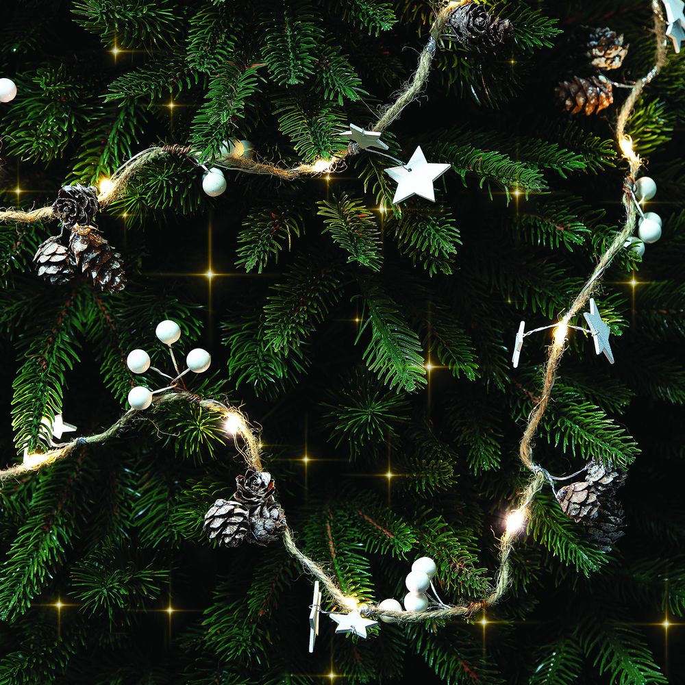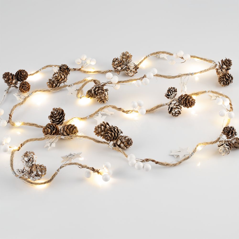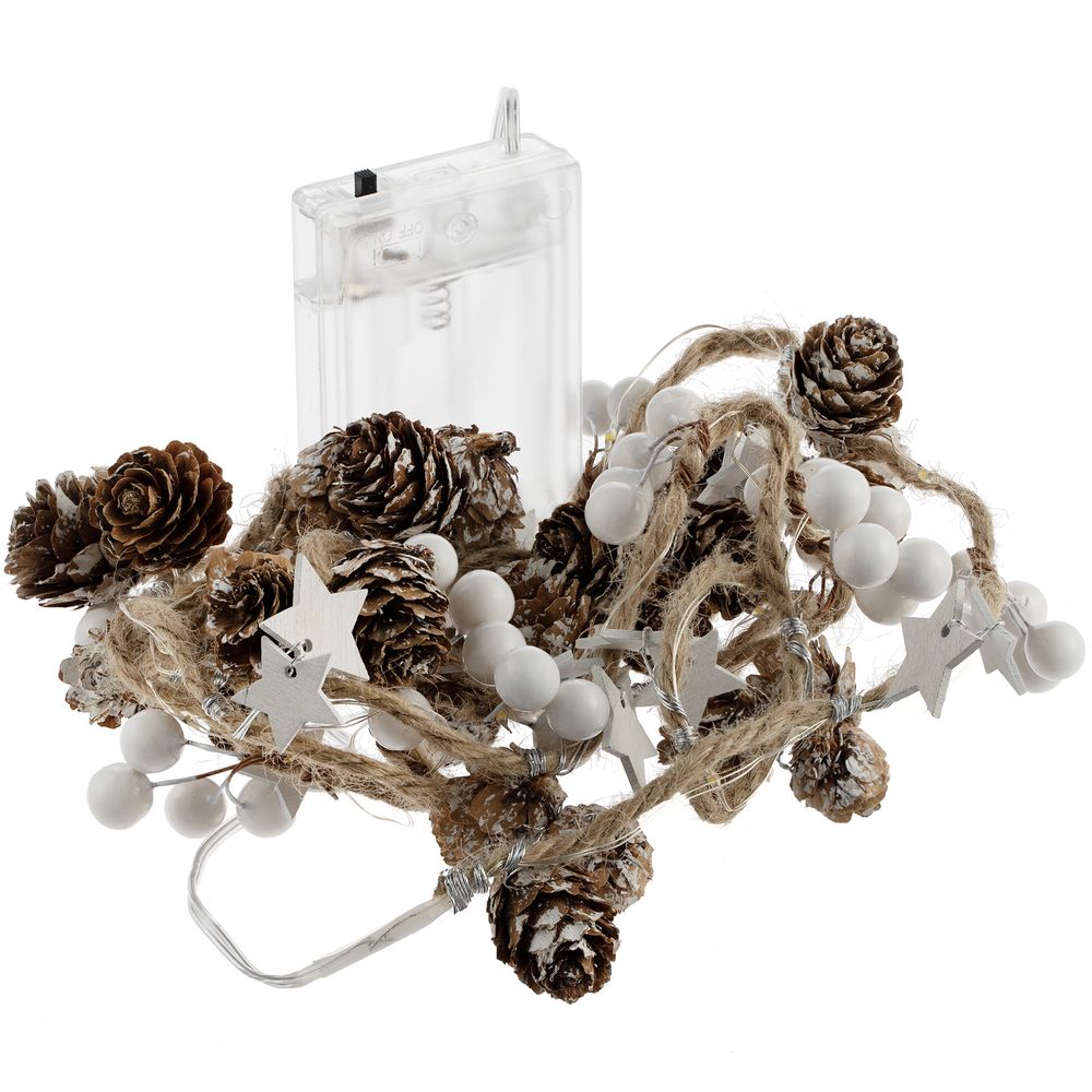 Cones and Berries. С признанием в любви к зиме.Шишки, бусины, звездочки и 20 лампочек с теплым светом. Работает от 3 батареек АА (в комплект не входят).