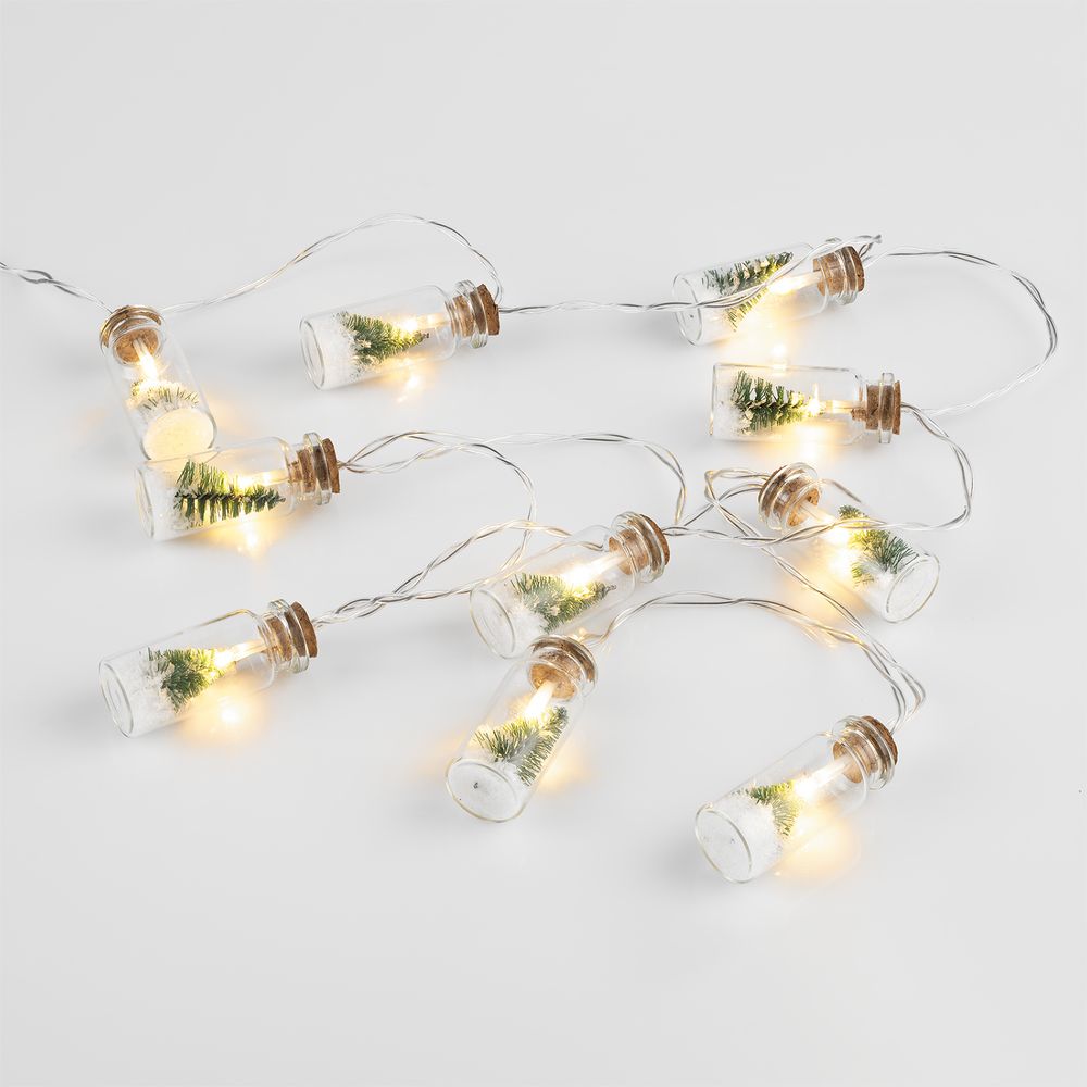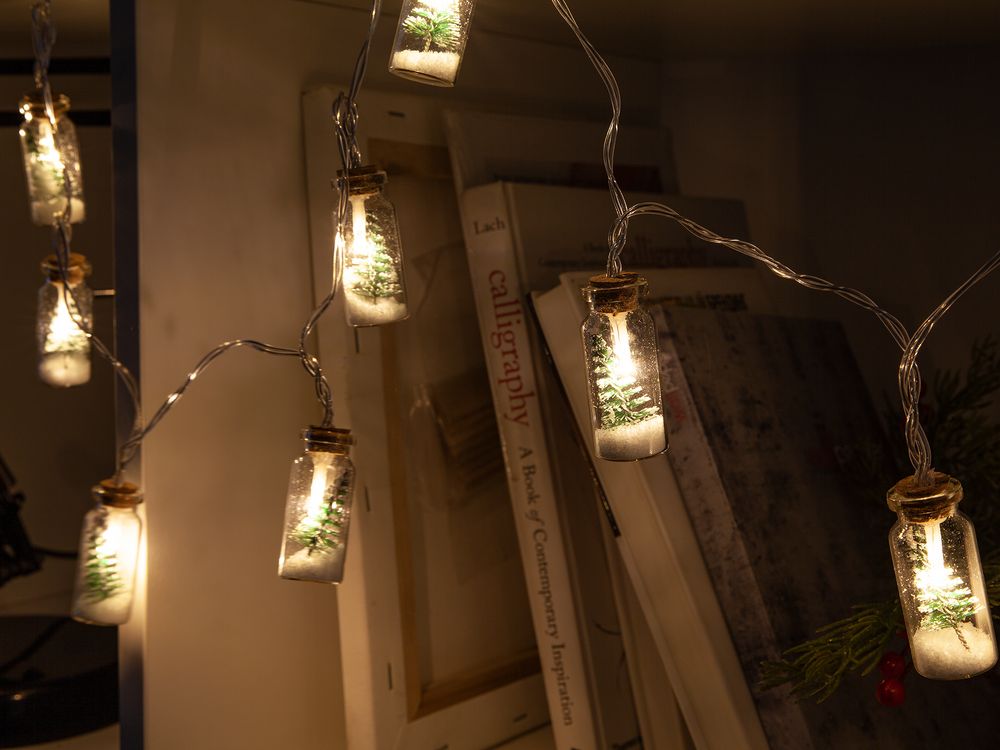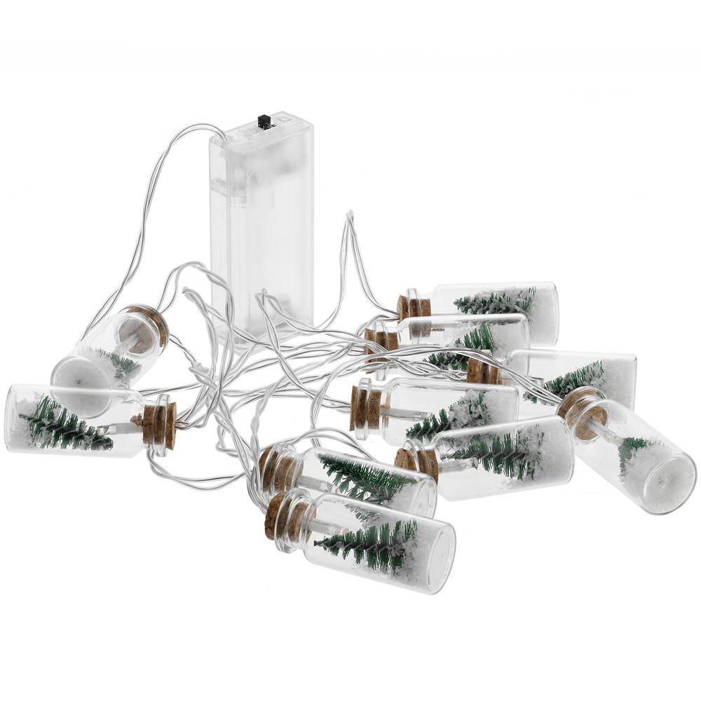 10 лампочек с теплым светом. Работает от 2 батареек АА (в комплект не входят).