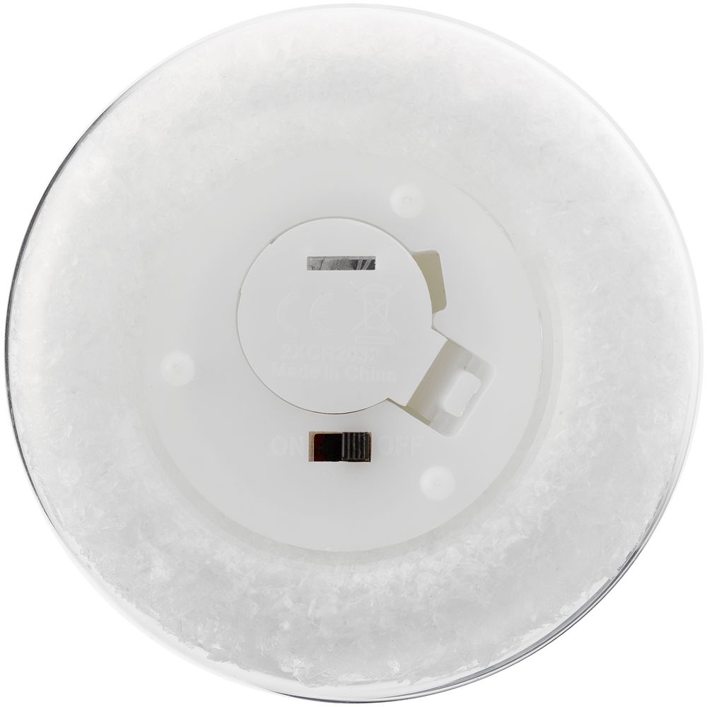 Внутри миниатюрная гирлянда с 15 лампочками с теплым светом. Работает от 2 батареек типа CR2032 (в комплект не входят).