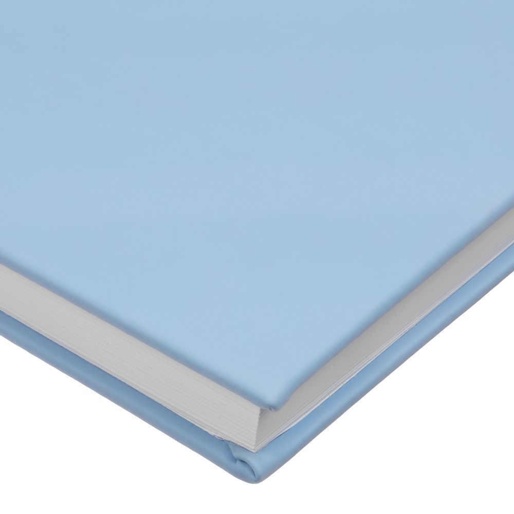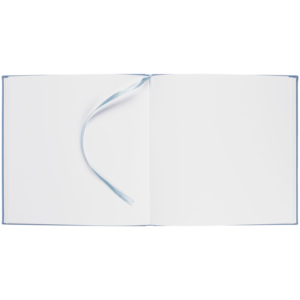 Скетчбук с твердой обложкой выполнен из материала Soft Touch, голубой JJ, дополнен ляссе в цвет обложки.