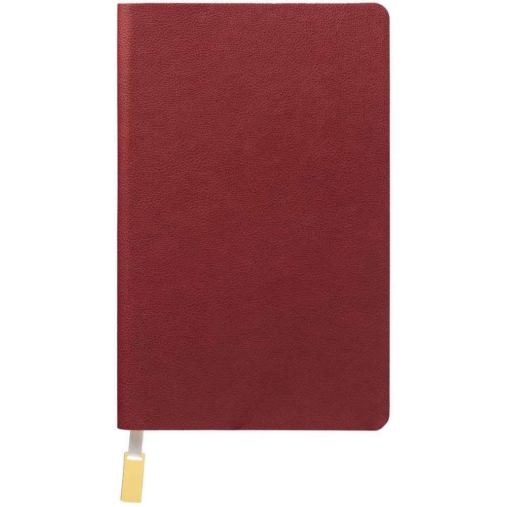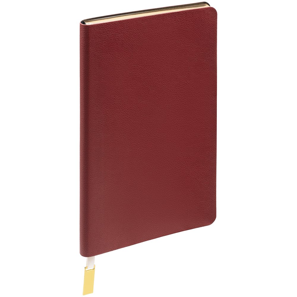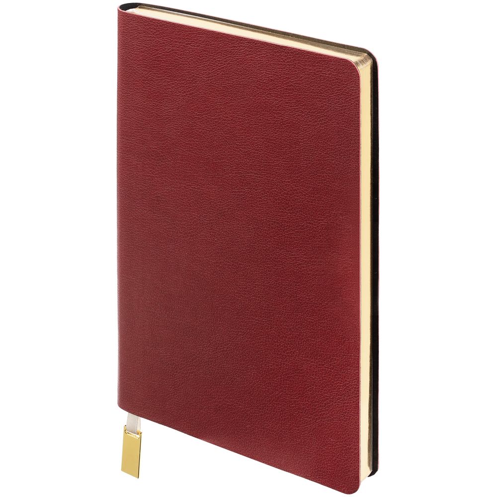 Ежедневник с гибкой обложкой, выполнен из материала Petrus, красный РР, дополнен ляссе с металлическим золотистым шильдиком.