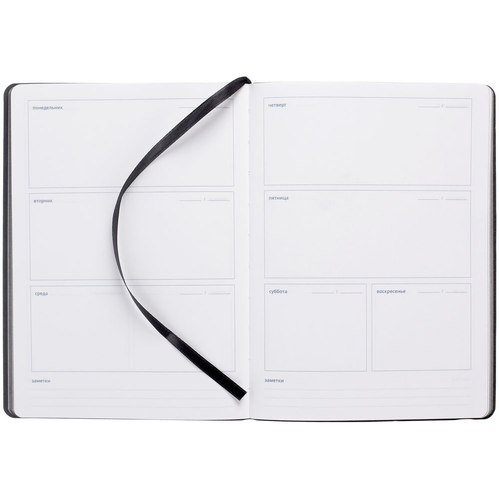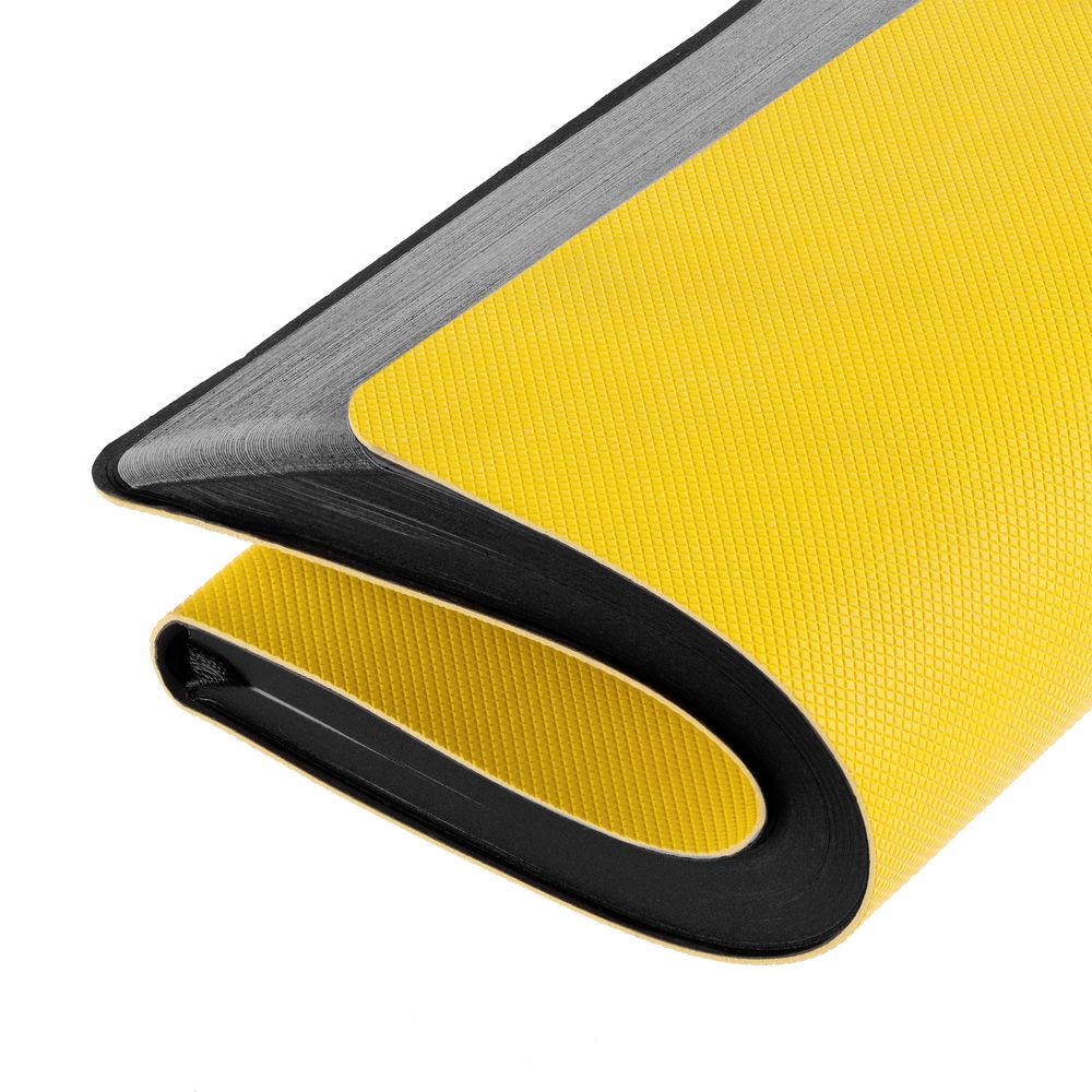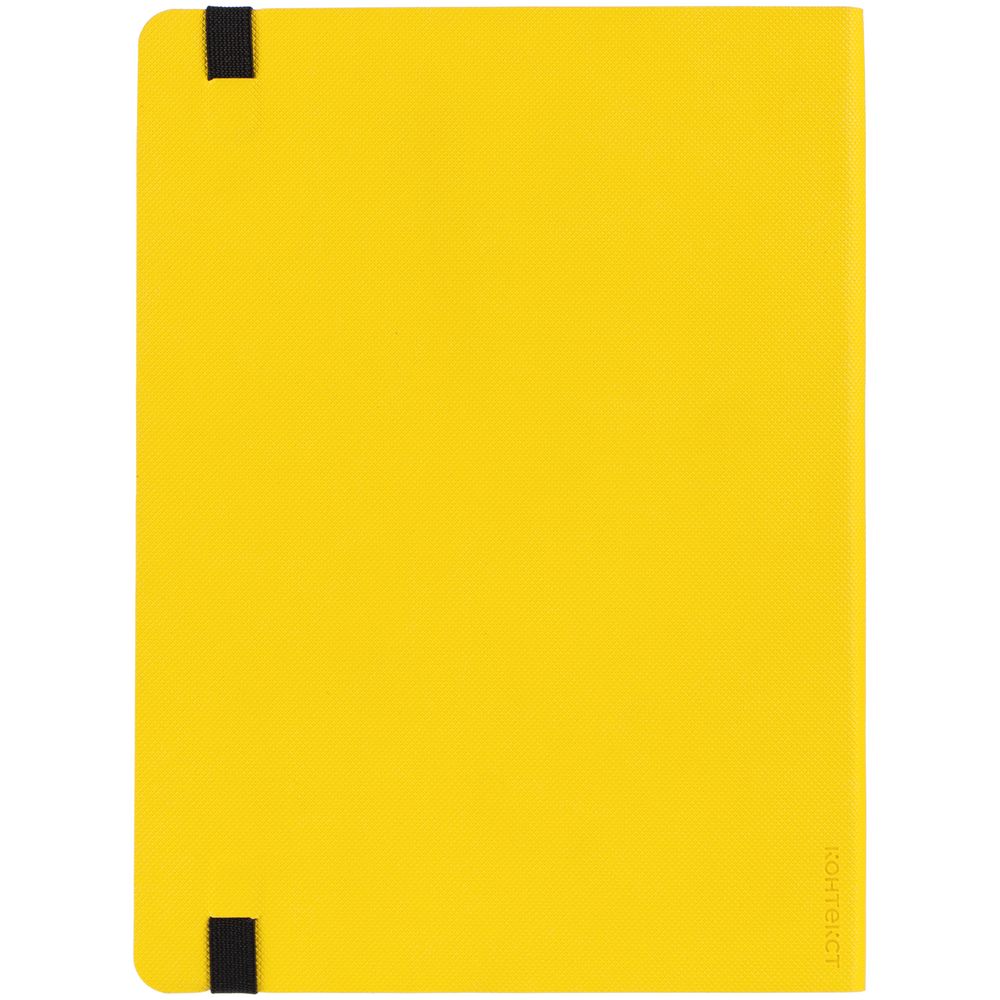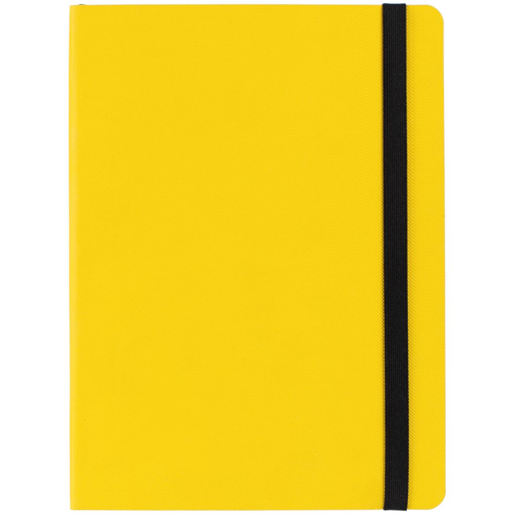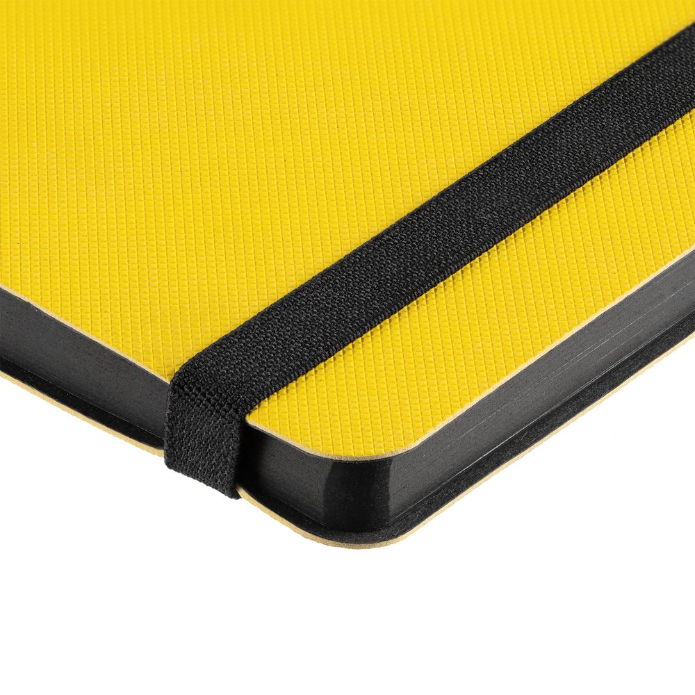 Еженедельник в гибкой обложке выполнен из материала Canyon, желтый КК, дополнен резинкой и ляссе черного цвета.