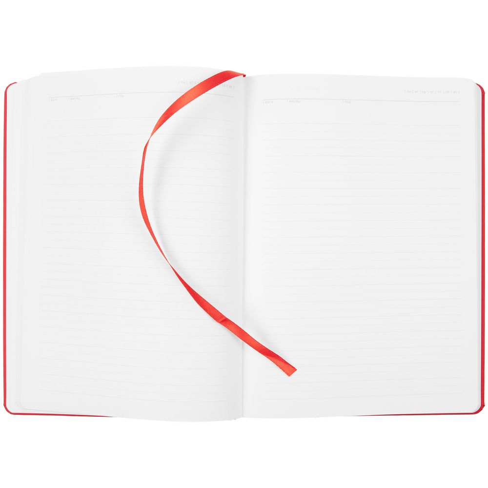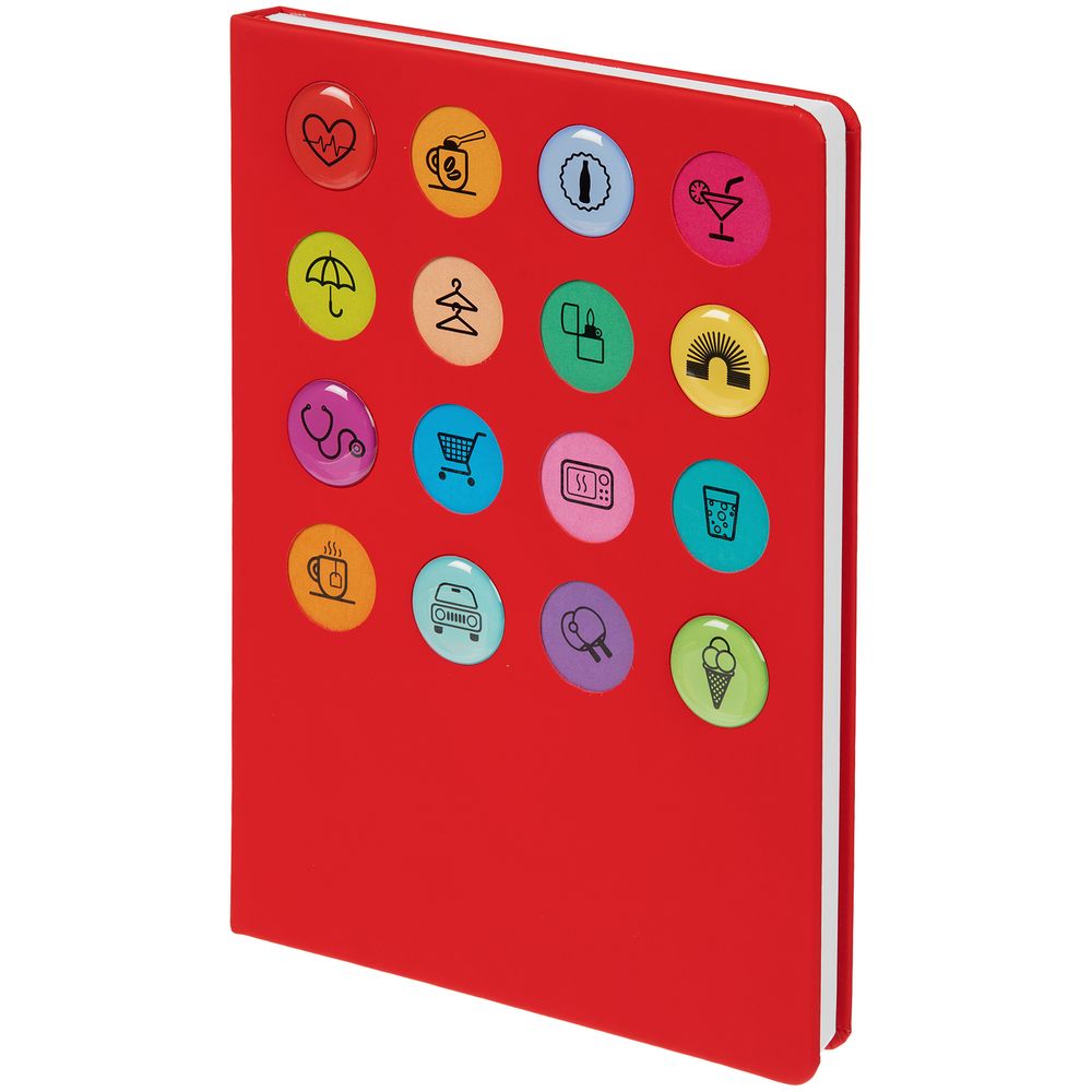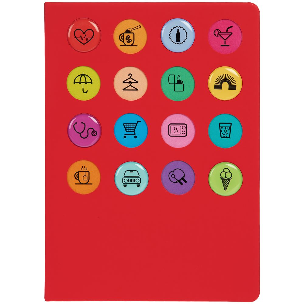 Обложка ежедневника из материала Soft Touch. На корешке обложки выполнено блинтовое тиснение, обложка дополнена вырубкой с печатью на бумаге и полимерными наклейками под смолой.