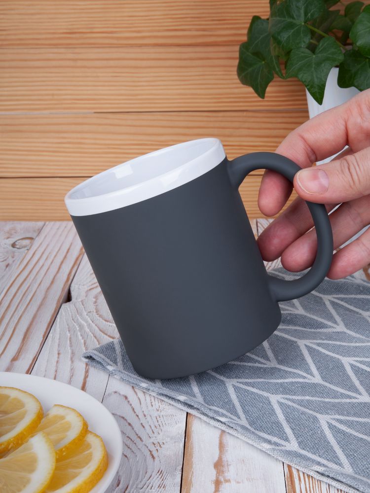 Кружки с прорезиненным покрытием софт-тач давно покорили наши сердца! Они очень приятны на ощупь и удобны в использовании — не выскальзывают из рук и не обжигают ладони. На бархатистой матовой поверхности получается создать эффектное нанесение.