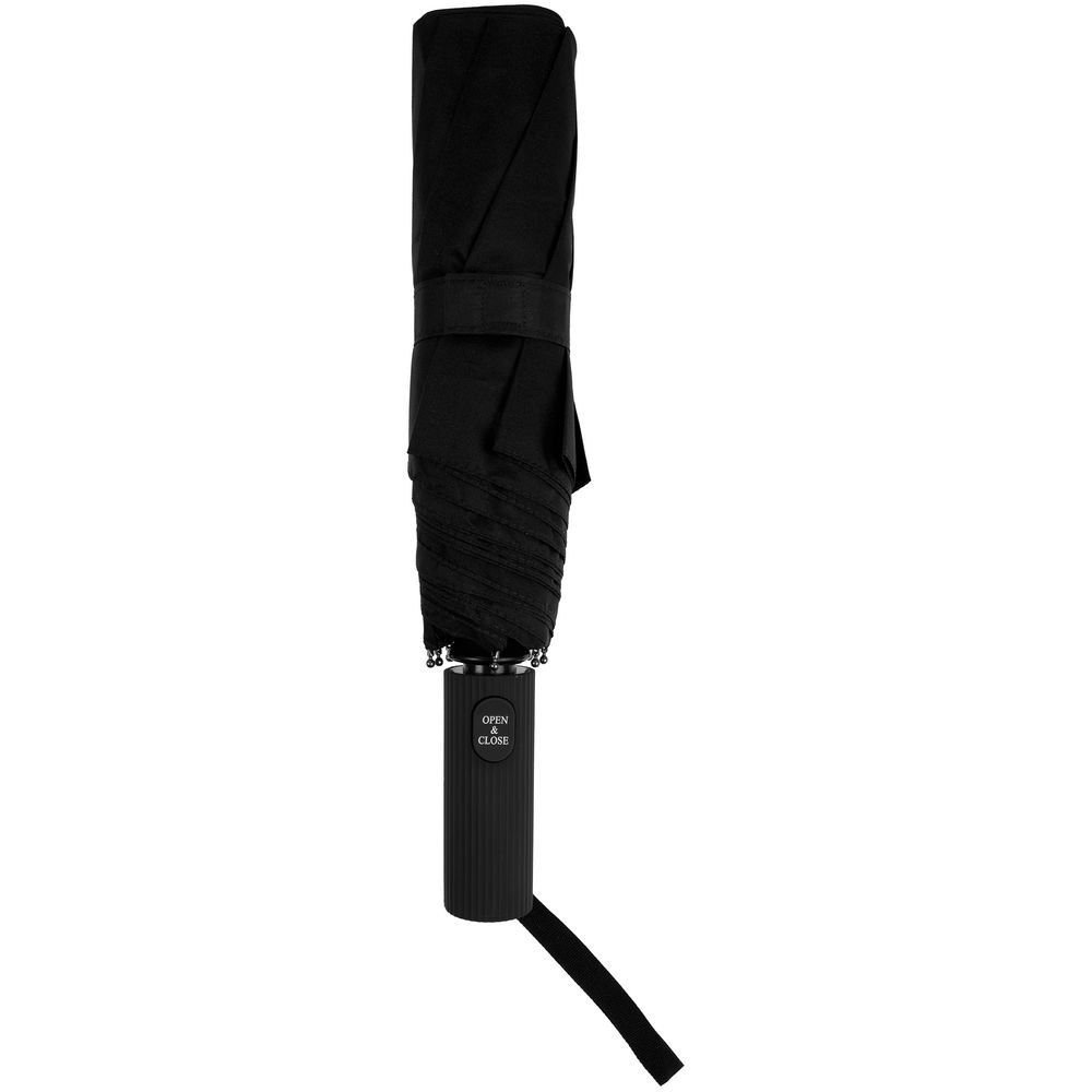 - Прямая ребристая ручка из пластика с петлей и кнопкой открытия и закрытия зонта