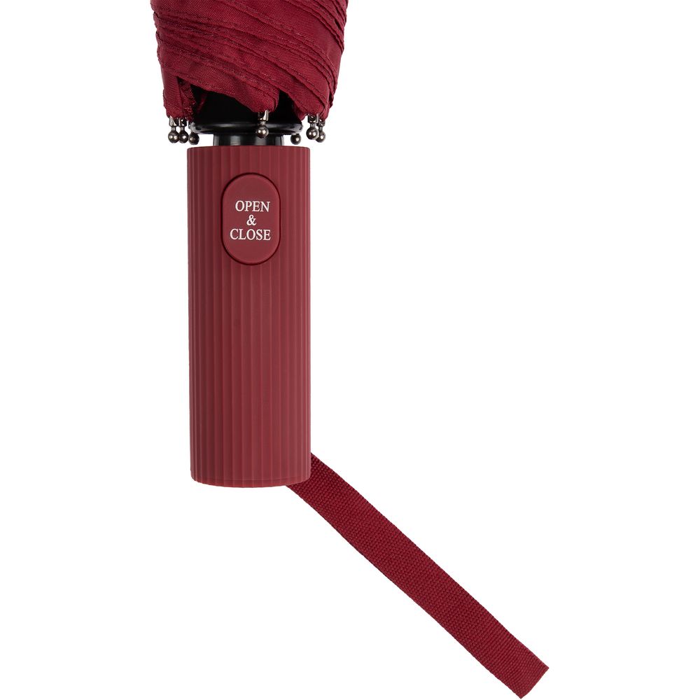 - Прямая ребристая ручка из пластика с петлей и кнопкой открытия и закрытия зонта