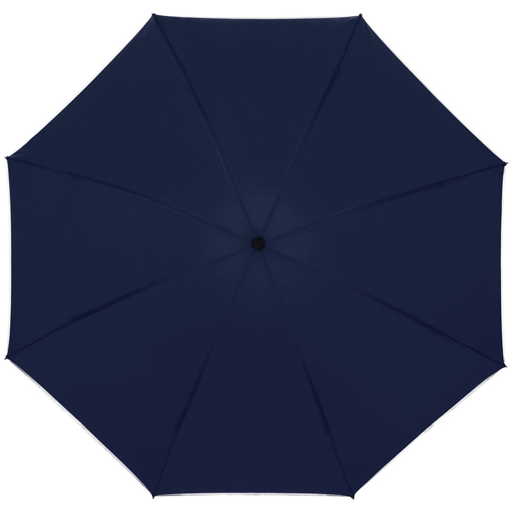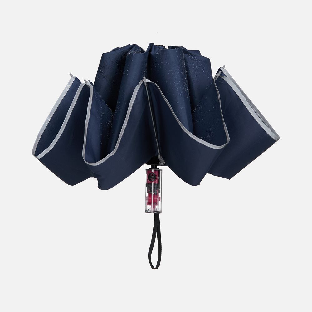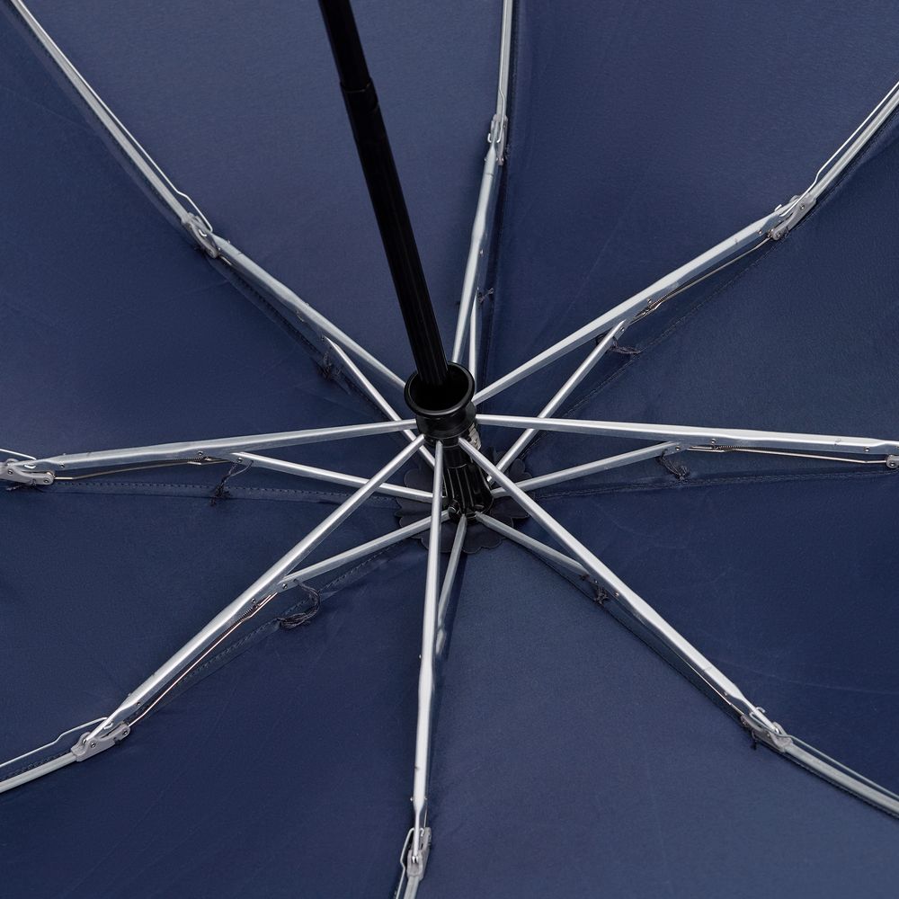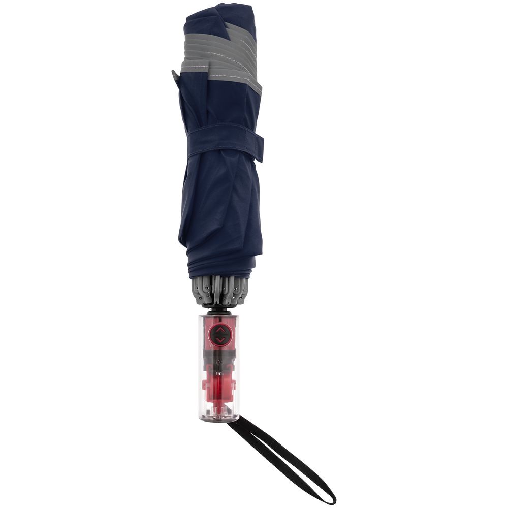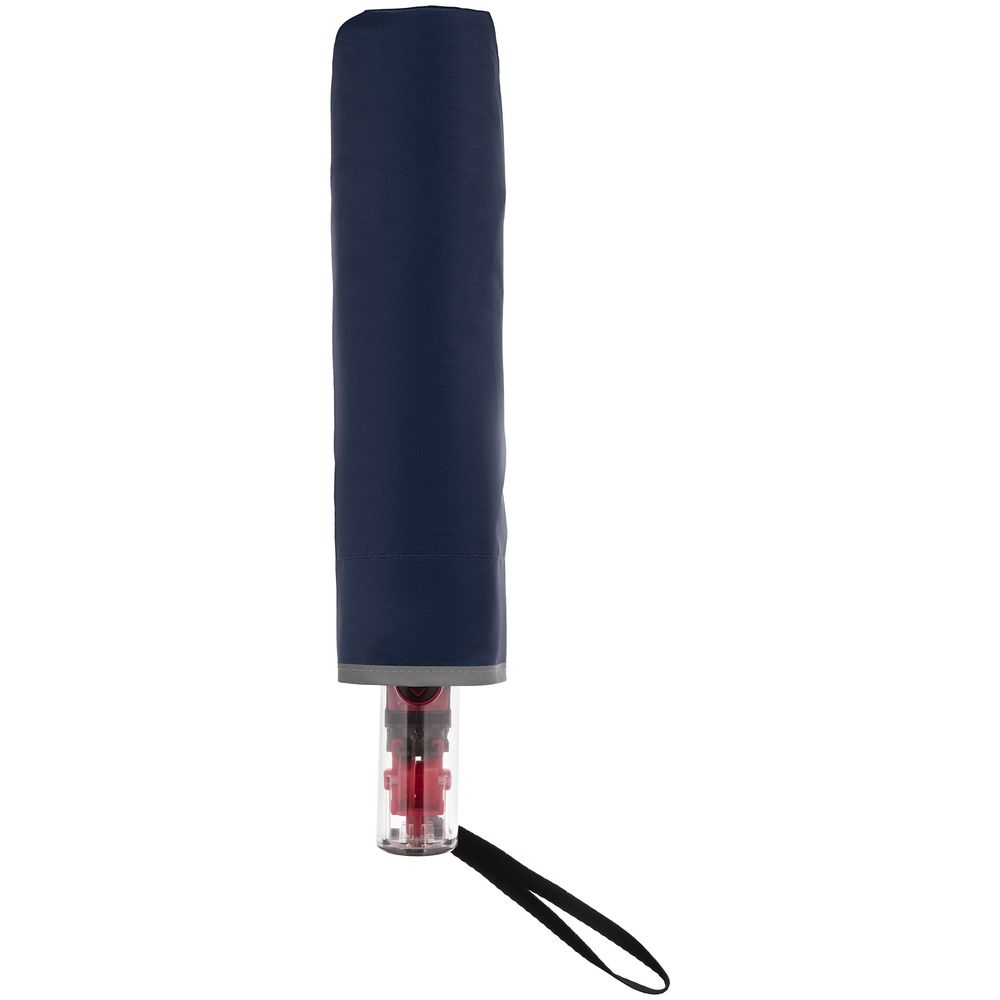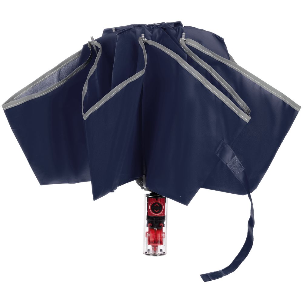 Складной зонт Futurum привлекает внимание оригинальным дизайном. Складываясь после дождя, он прячет мокрую поверхность в себя, а сухая остается снаружи. Светоотражающий кант и ручка из прозрачного пластика, не скрывающая ярких деталей внутри, добавляют внешнему виду зонта футуристичности.