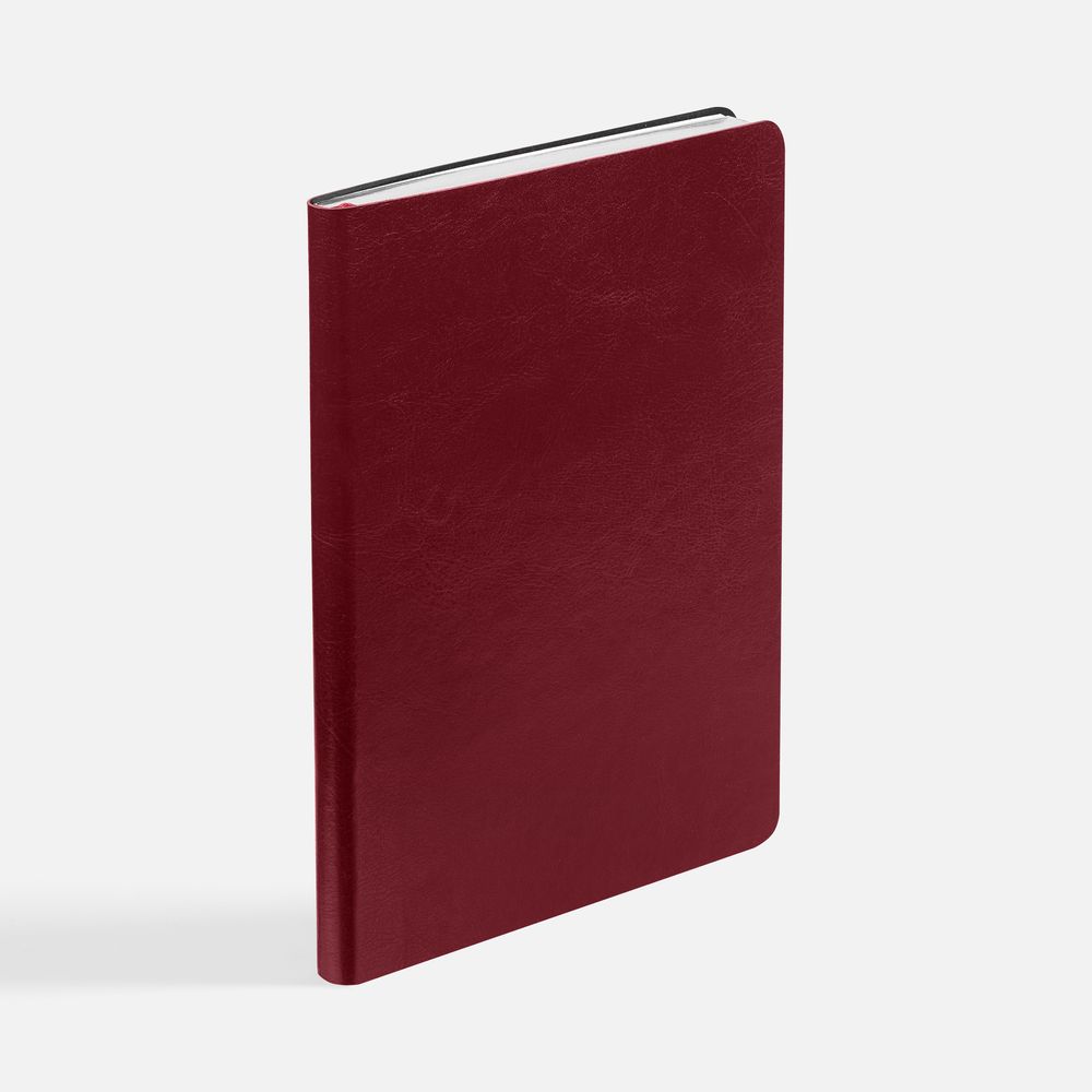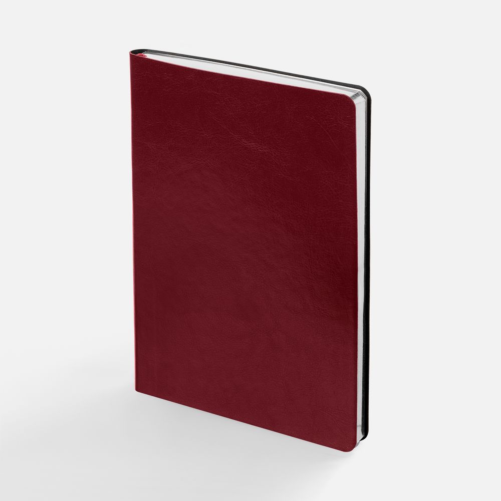 Ежедневник с гибкой обложкой, выполнен из материала Nebraska, винный SS, дополнен ляссе бордового цвета.