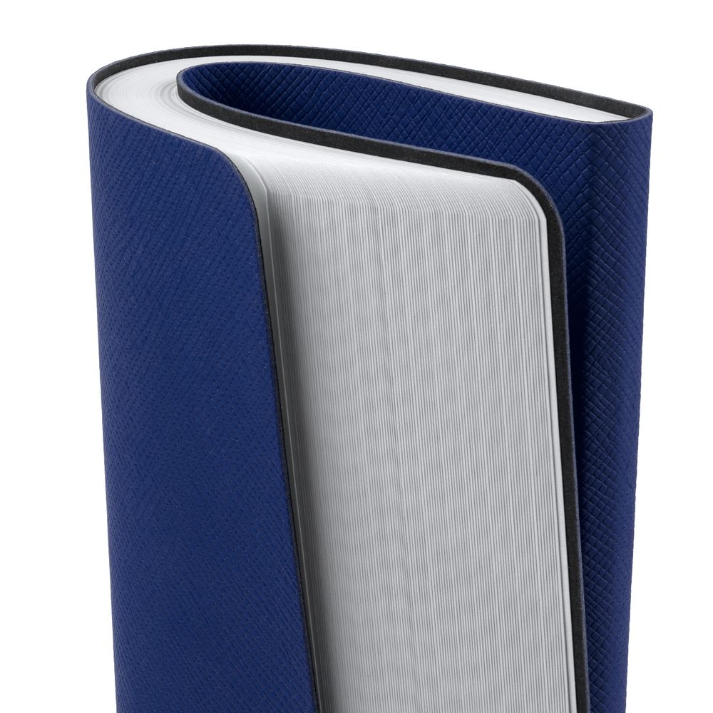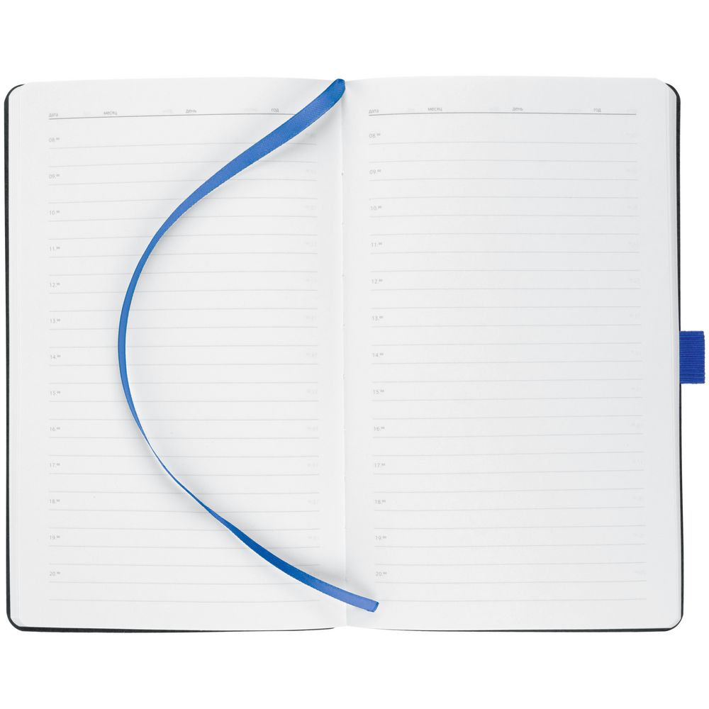 Ежедневник с гибкой обложкой, выполнен из материала Nice Touch, синий НН, дополнен цветными ляссе и петлей-резинкой для ручки.
