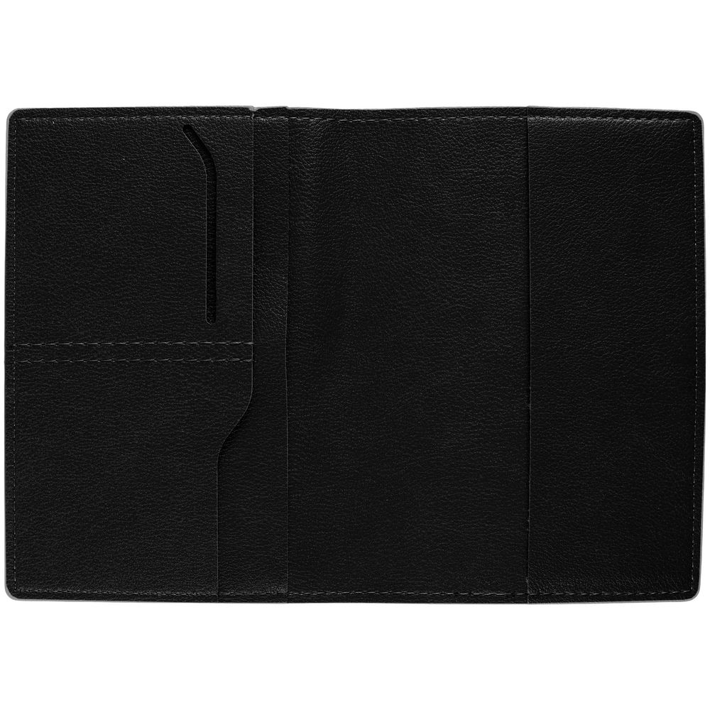 Имеет основное отделение для паспорта и 2 кармана для визиток или кредитных карт.