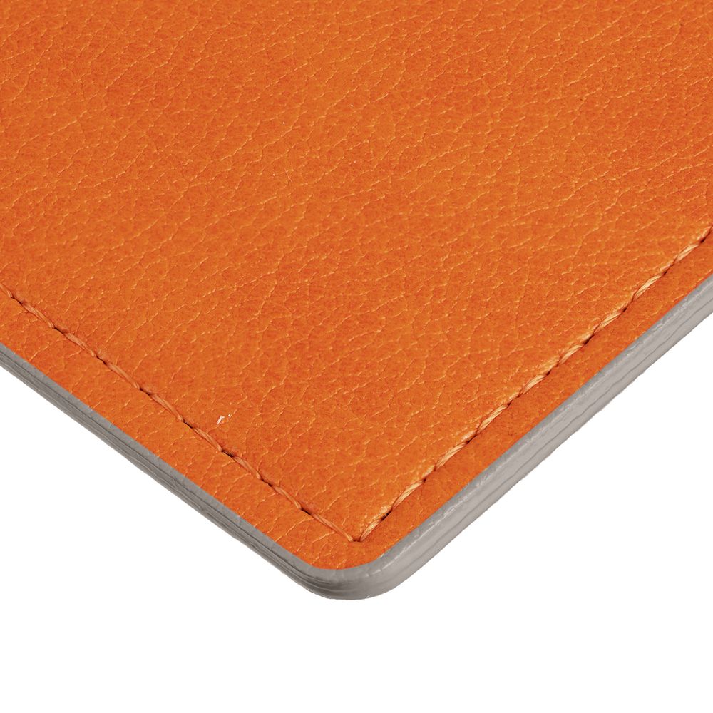 Обложка выполнена из материала Petrus, оранжевый ОО. Срез обложки окрашен в серый цвет.
