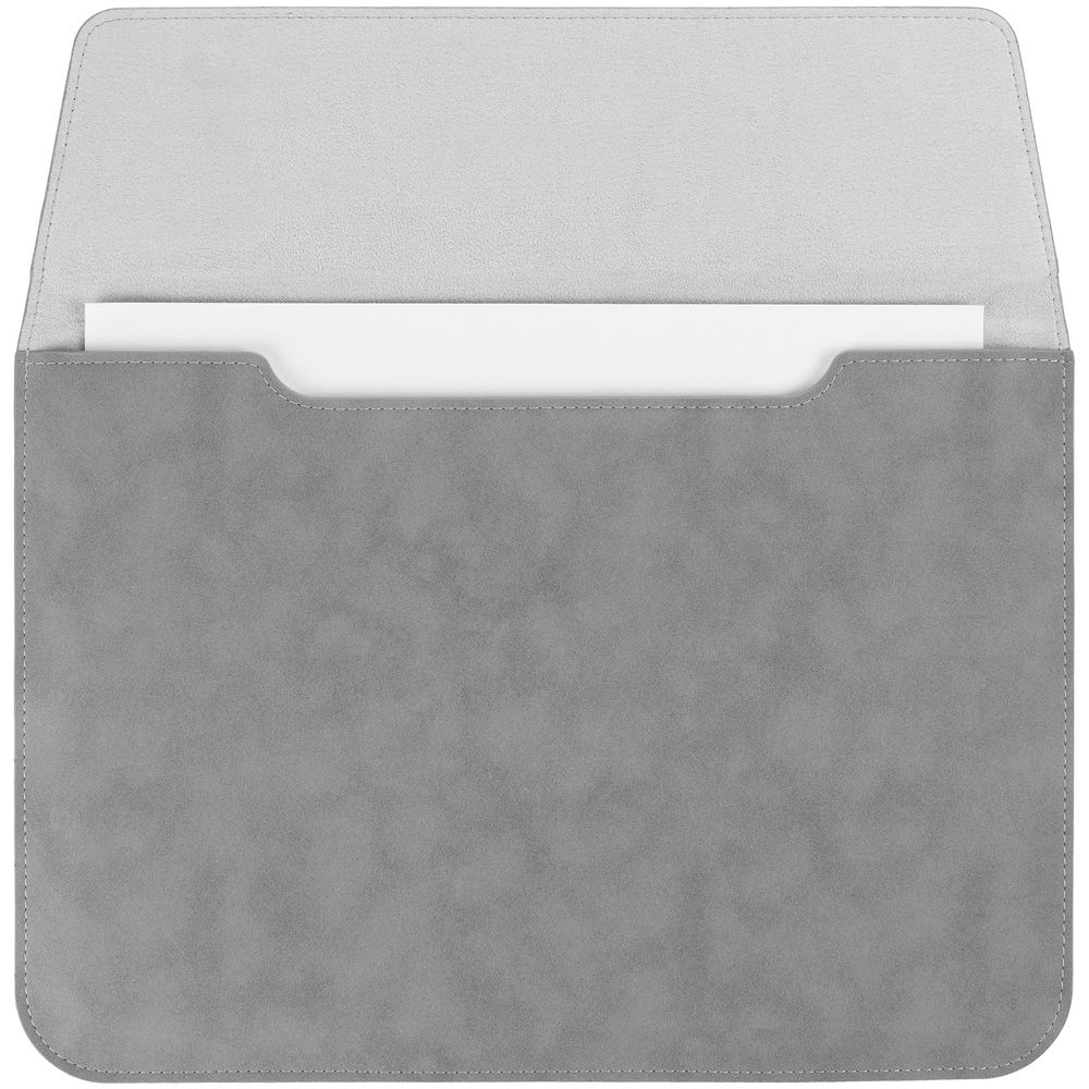 Чехол для ноутбука с диагональю до 13", выполнен из материала Nubuck, светло-серый СС, внутри серый велюр.