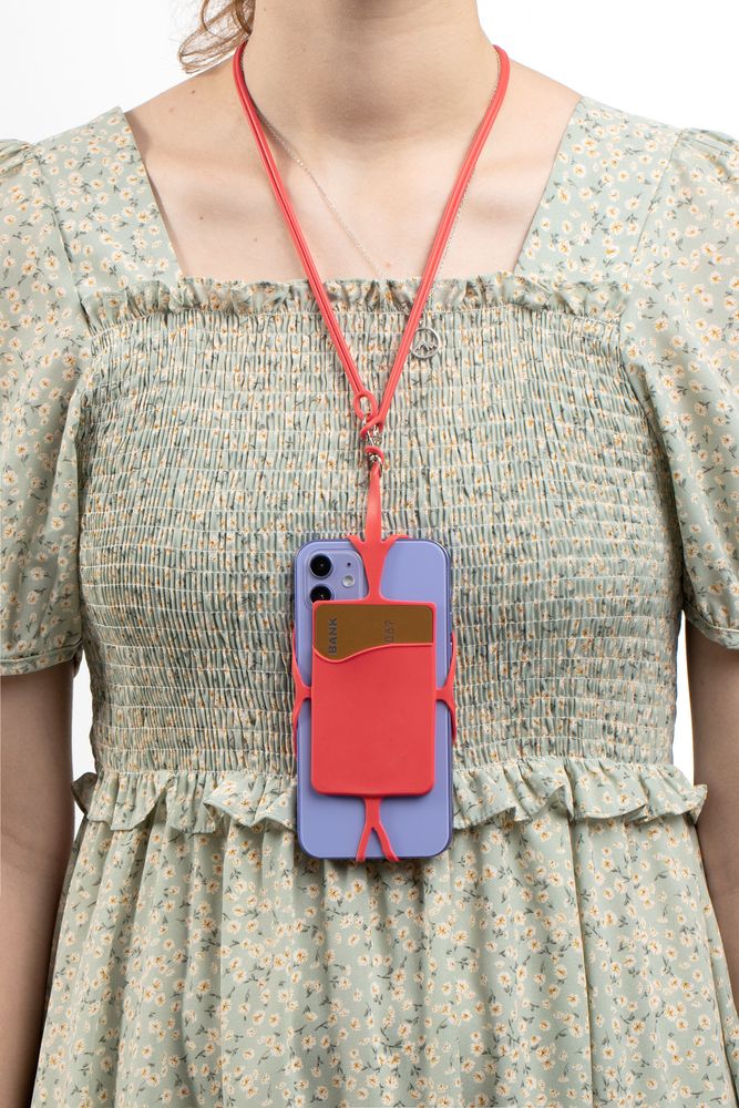 Чехол для карточки с креплением на телефон. Длина шнурка позволяет носить телефон на шее.