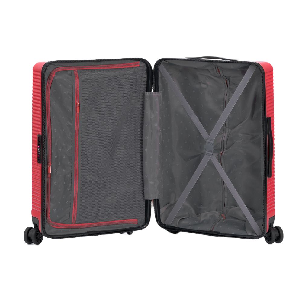 - Чемодан с 2 отделениями: одно из них с фиксирующими ремнями, второе — с разделителем и карманом-органайзер на молнии