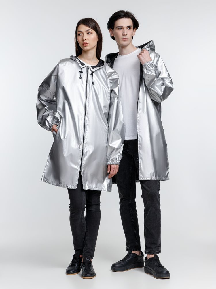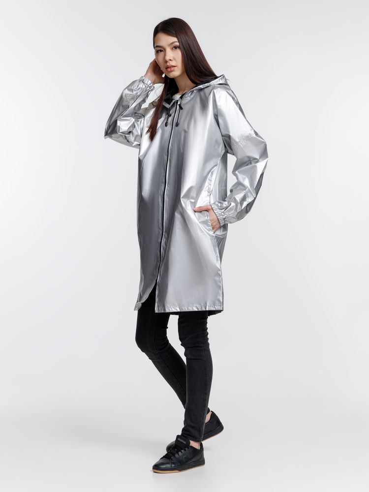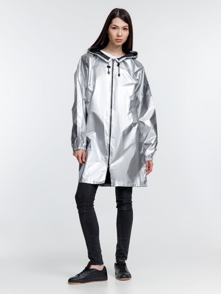 Плащ-дождевик из ткани таффета на молнии с капюшоном. Складывается в мешочек — удобно брать с собой.