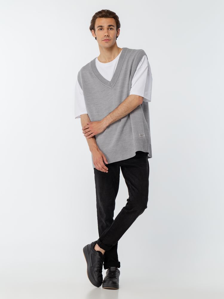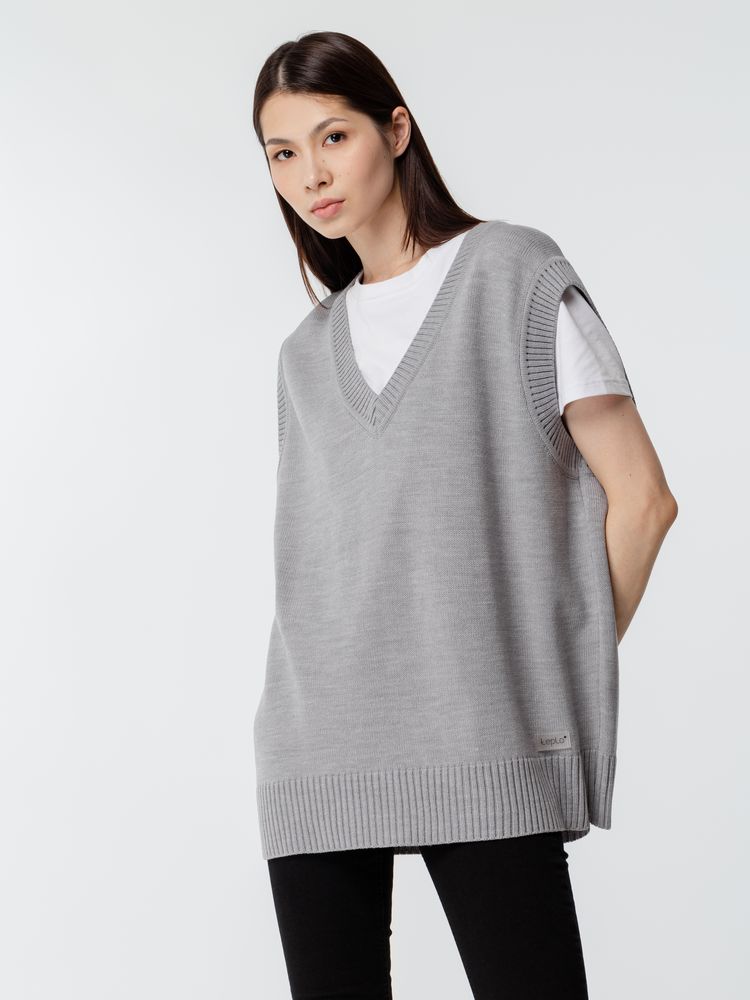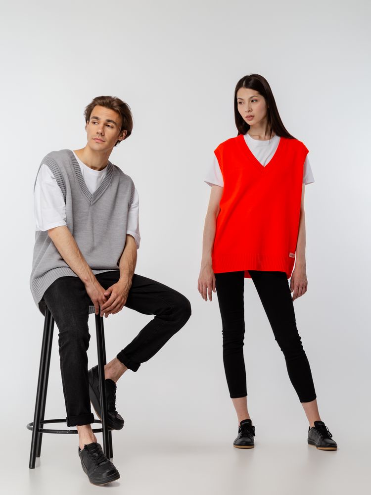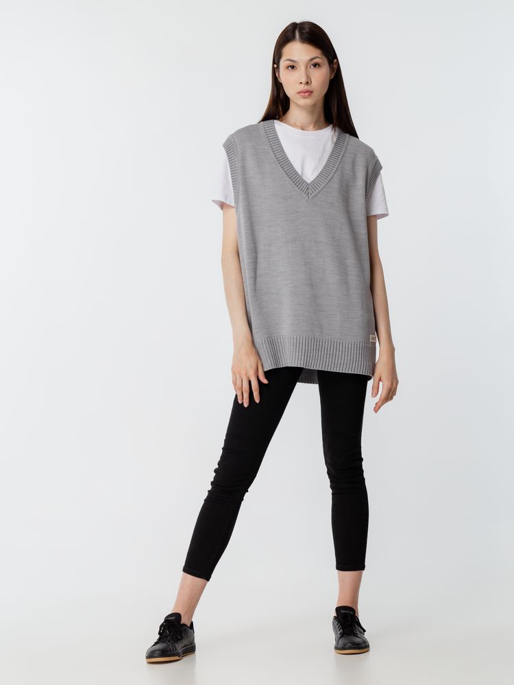 Простой по вязке однотонный жилет с посадкой гипероверсайз и широкой резинкой в тон по проймам и вороту станет стильным дополнением к базовой капсуле и порадует любителей максимализма в одежде. Воплощение комфорта и эстетики.