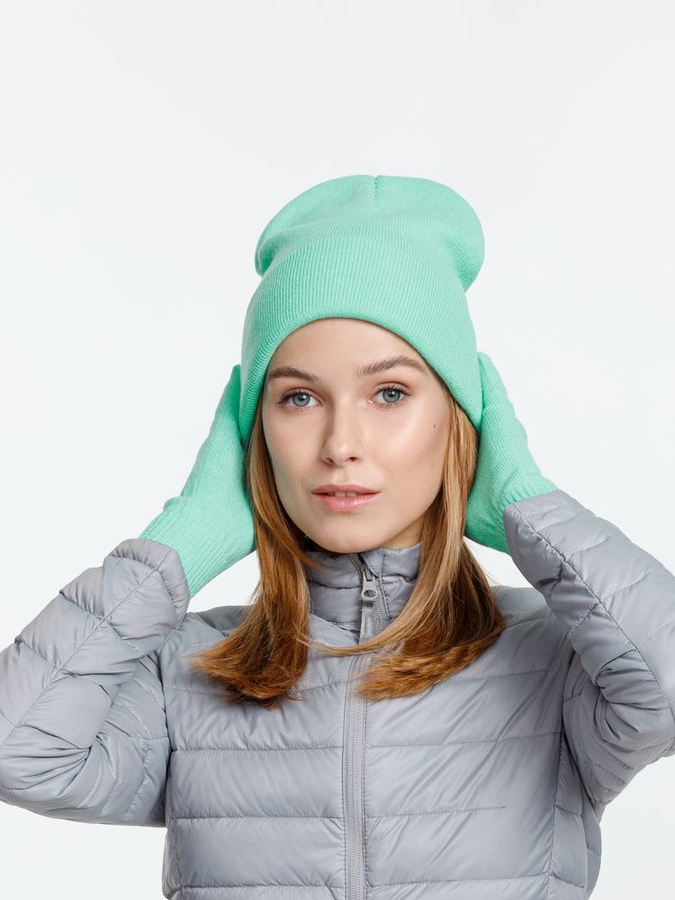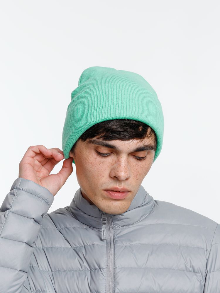 Двухслойная шапка из акриловой пряжи с регулируемым отворотом 7–10 см.