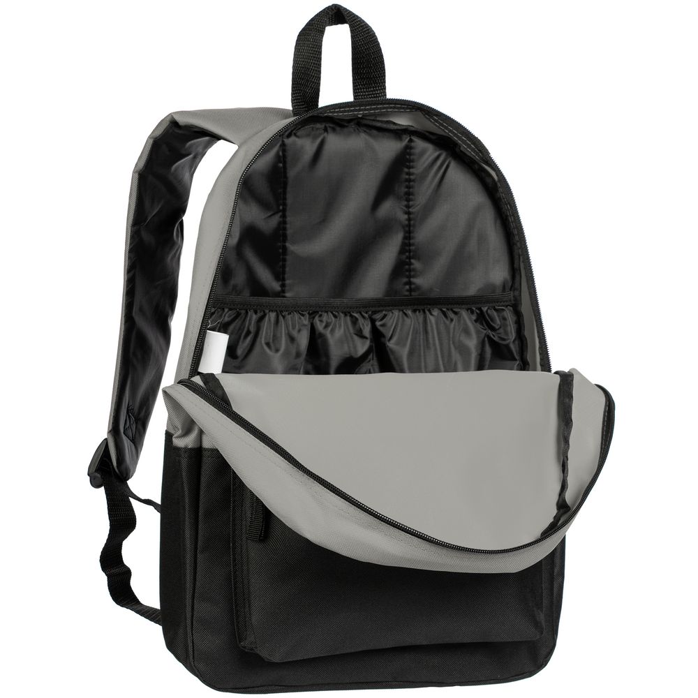 Базовый городской рюкзак в двухцветном исполнении с мягкими уплотненными лямками и спинкой.