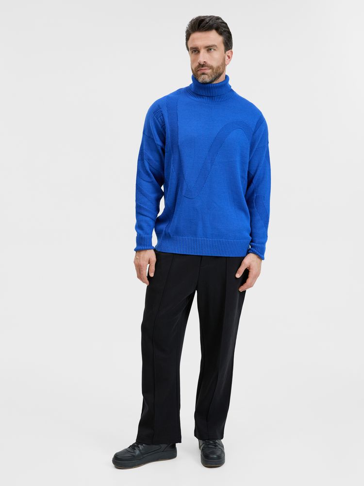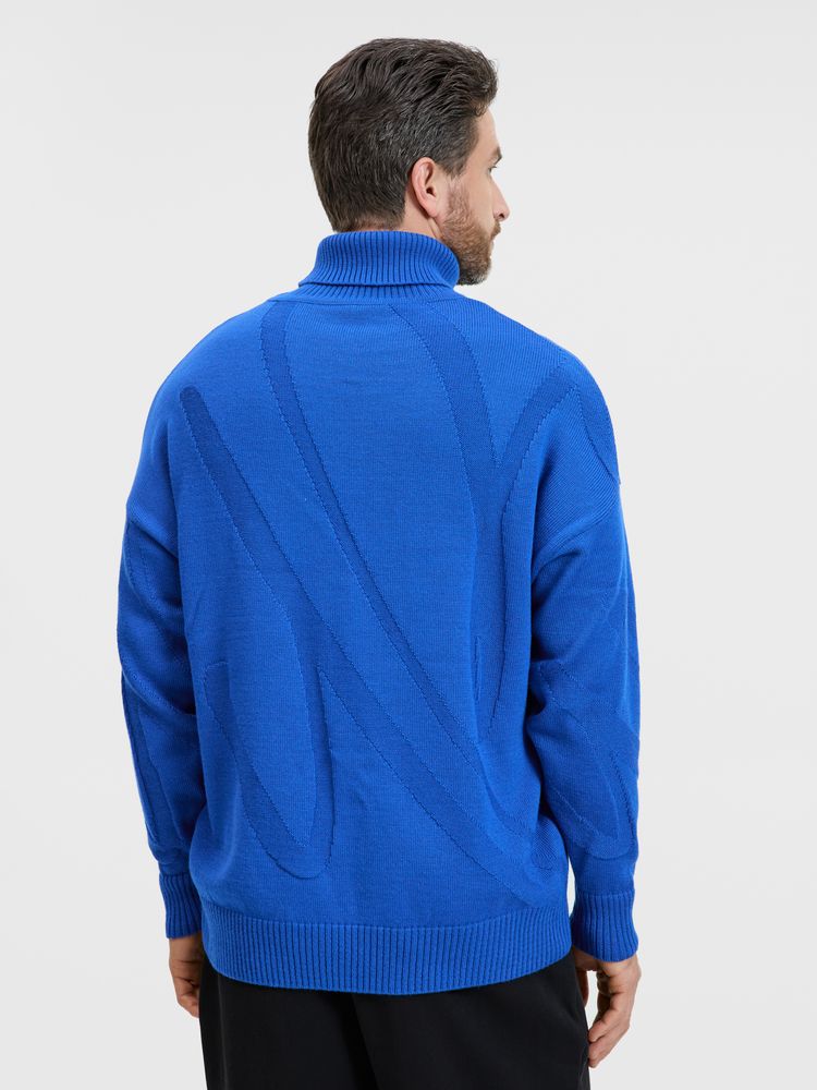 Однотонный свитер с фактурным вывязанным логотипом в фирменном цвете вашей компании.
