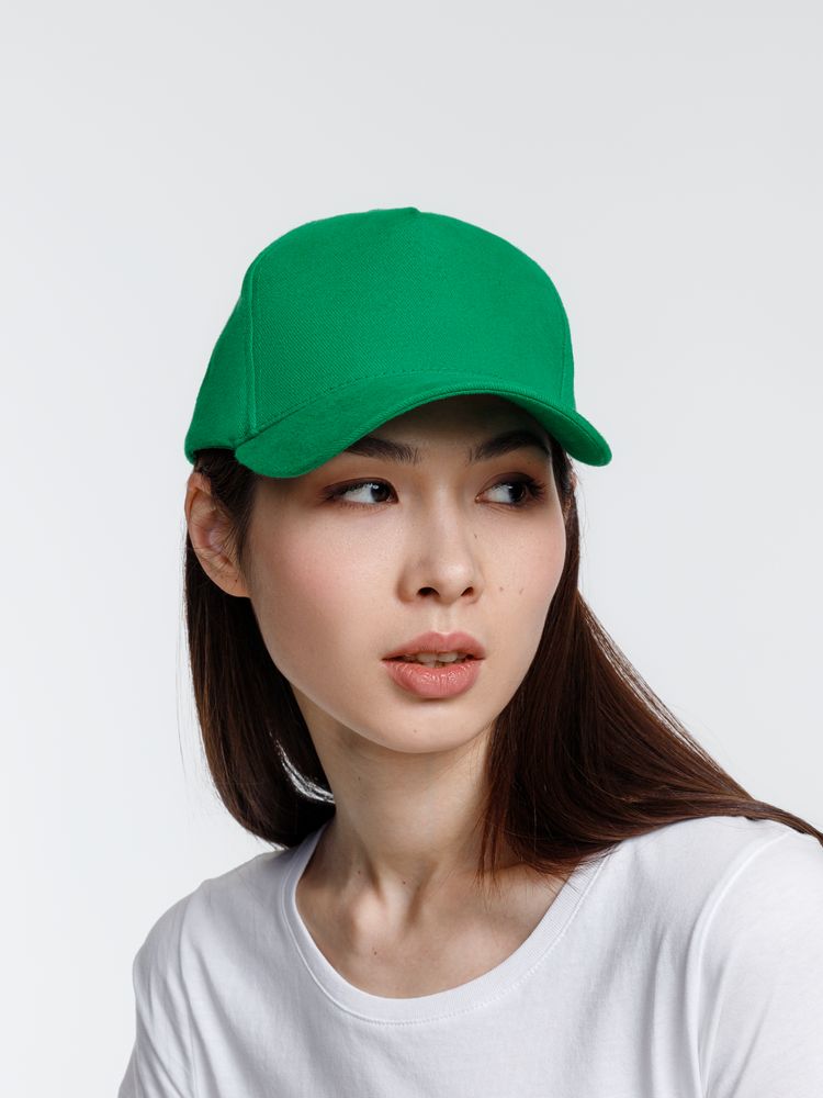 Минималистичная бейсболка с закругленным козырьком и большим местом для нанесения логотипа.