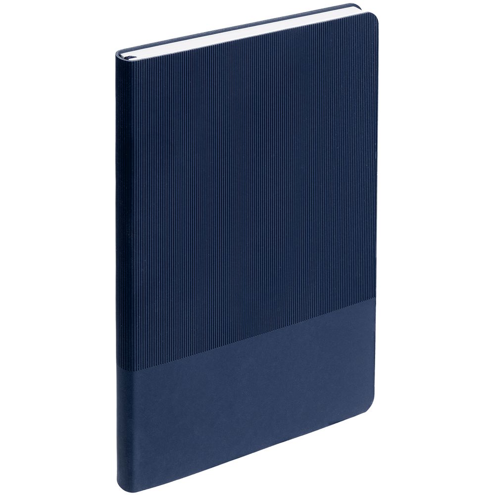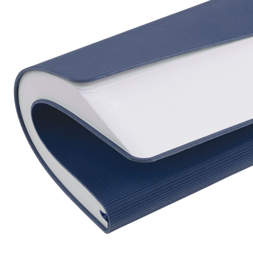 Ежедневник с гибкой обложкой выполнен из материала Soft Touch Pearl, синий НН и Latte, темно-синий (внутренний материал); дополнен ляссе темно-синего и фактурным тиснением обложки.