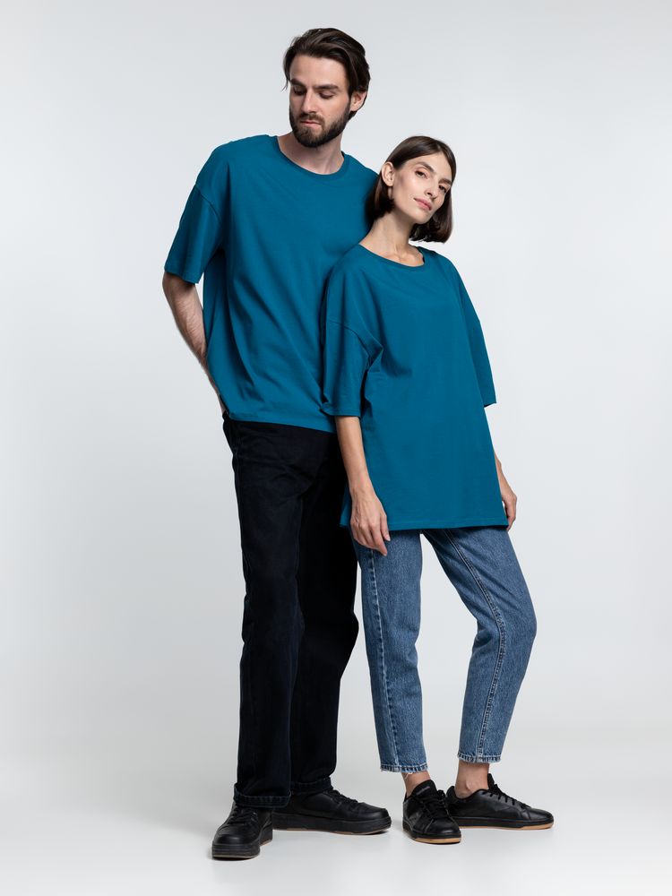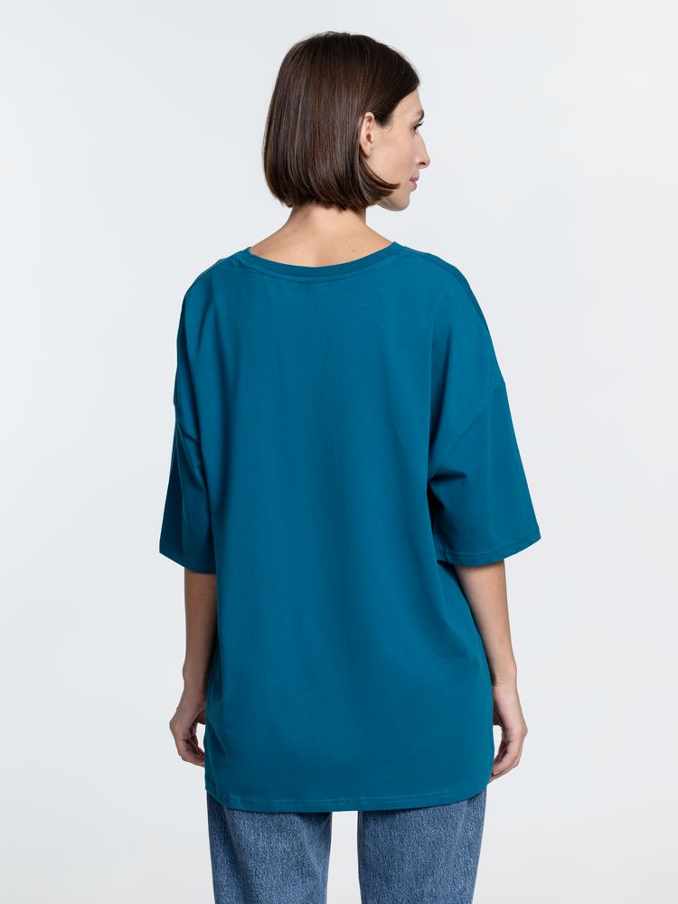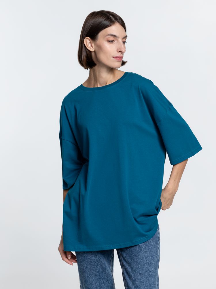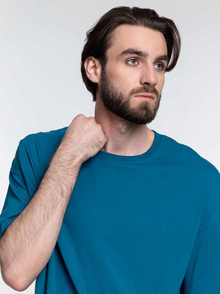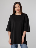 Объемная кроеная футболка с удлиненным рукавом из гребенного хлопка с эластаном не стесняет движений и создает модный расслабленный силуэт.