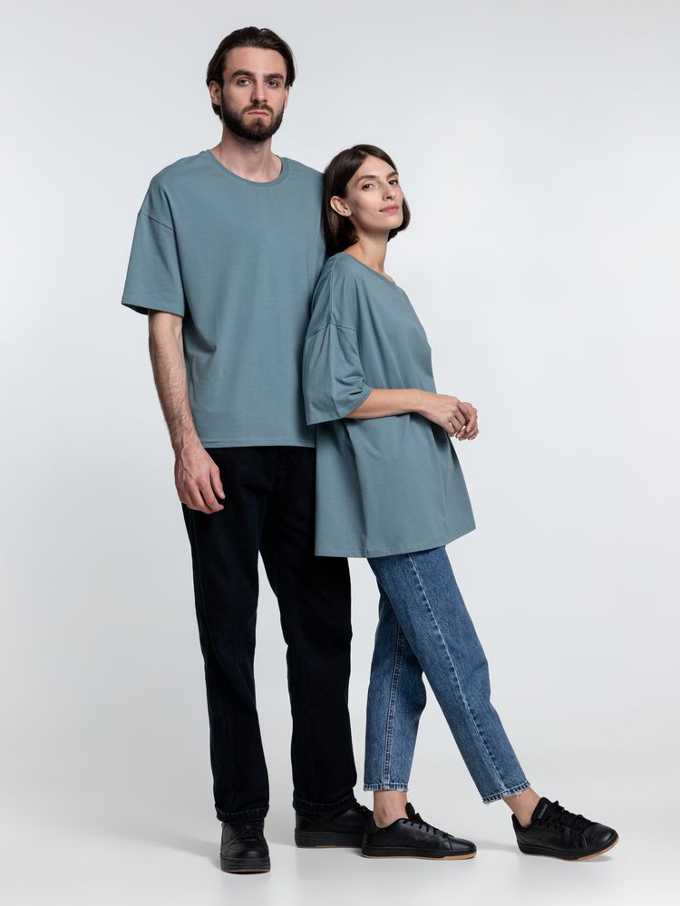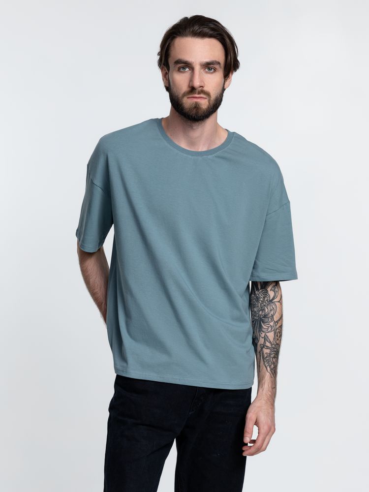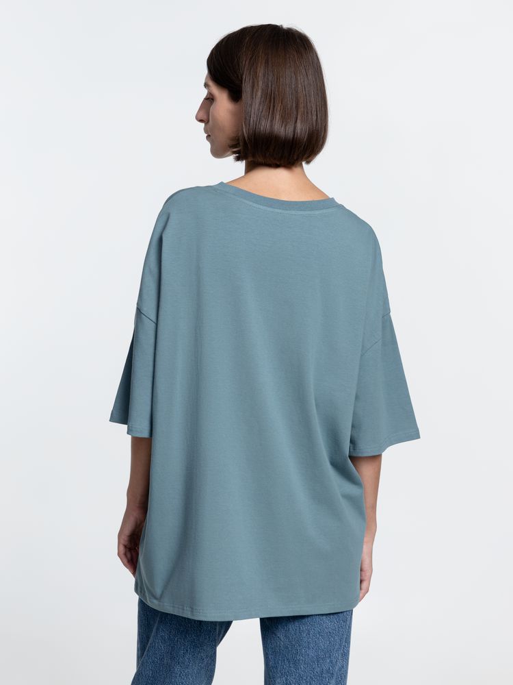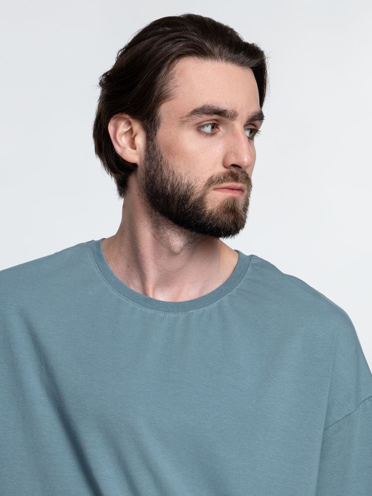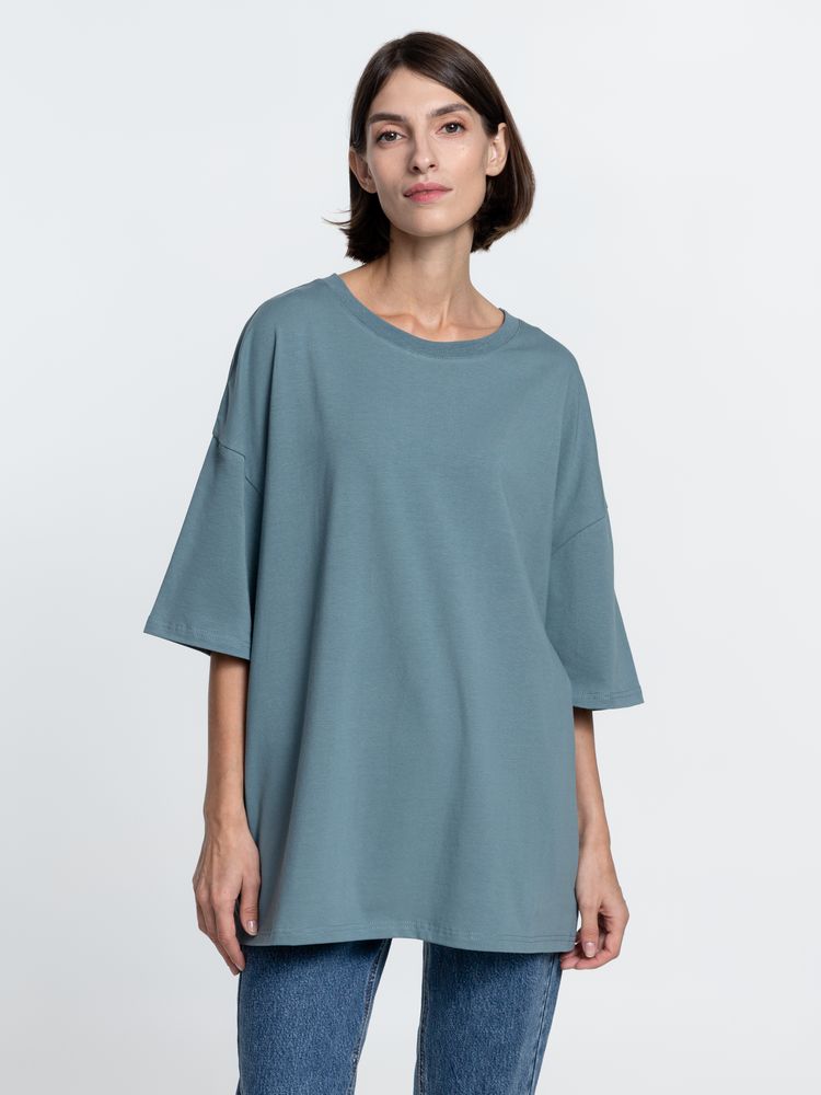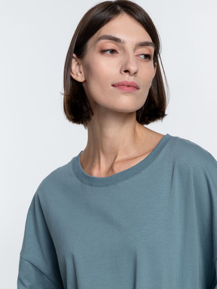 Объемная кроеная футболка с удлиненным рукавом из гребенного хлопка с эластаном не стесняет движений и создает модный расслабленный силуэт.