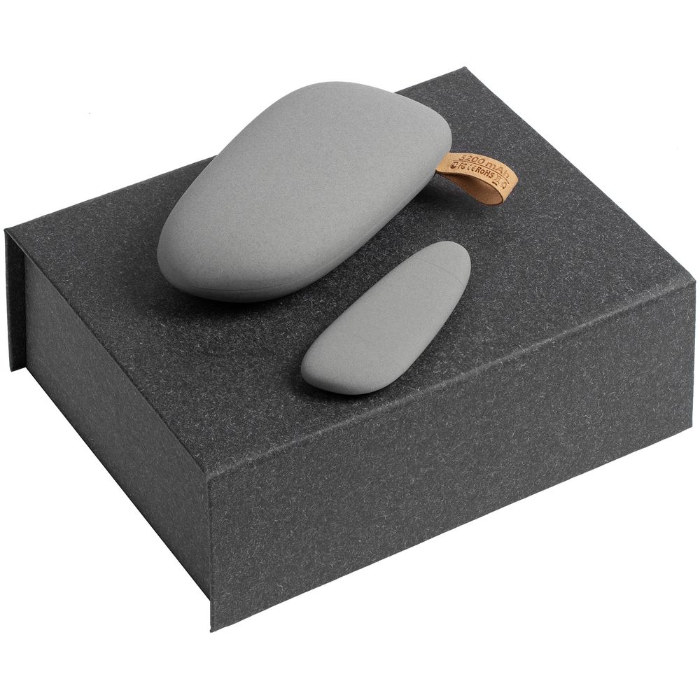 В набор Causeway входят флешка и аккумулятор Pebble, отличающиеся стильным дизайном и эргономичностью формы. Сочетание плавности линий с шероховатостью поверхности напоминает природный камень и навевает мысли о море. Набор поставляется в черной коробке, идеально подходящей для нанесения логотипа.