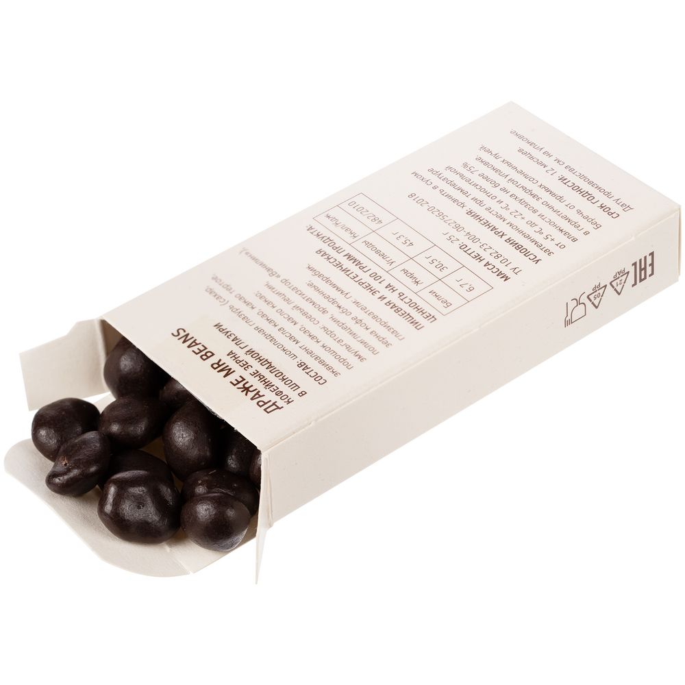 Обжаренные кофейные зерна в двойном слое глазури из темного шоколада.
