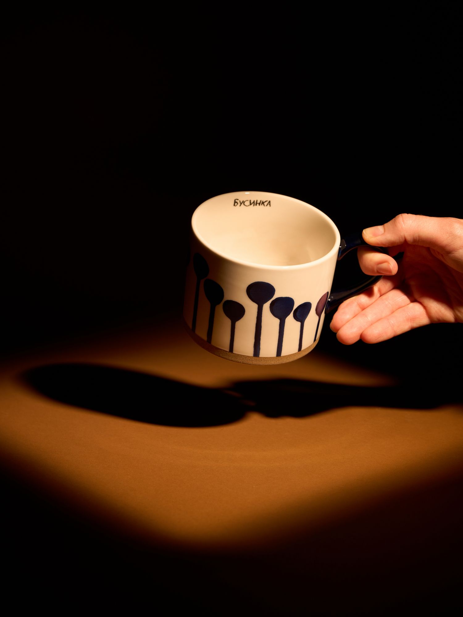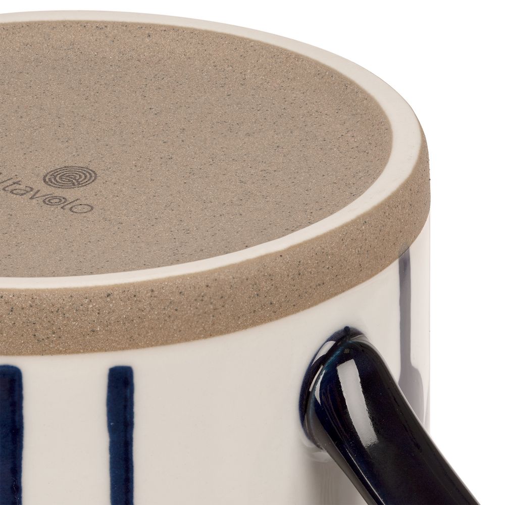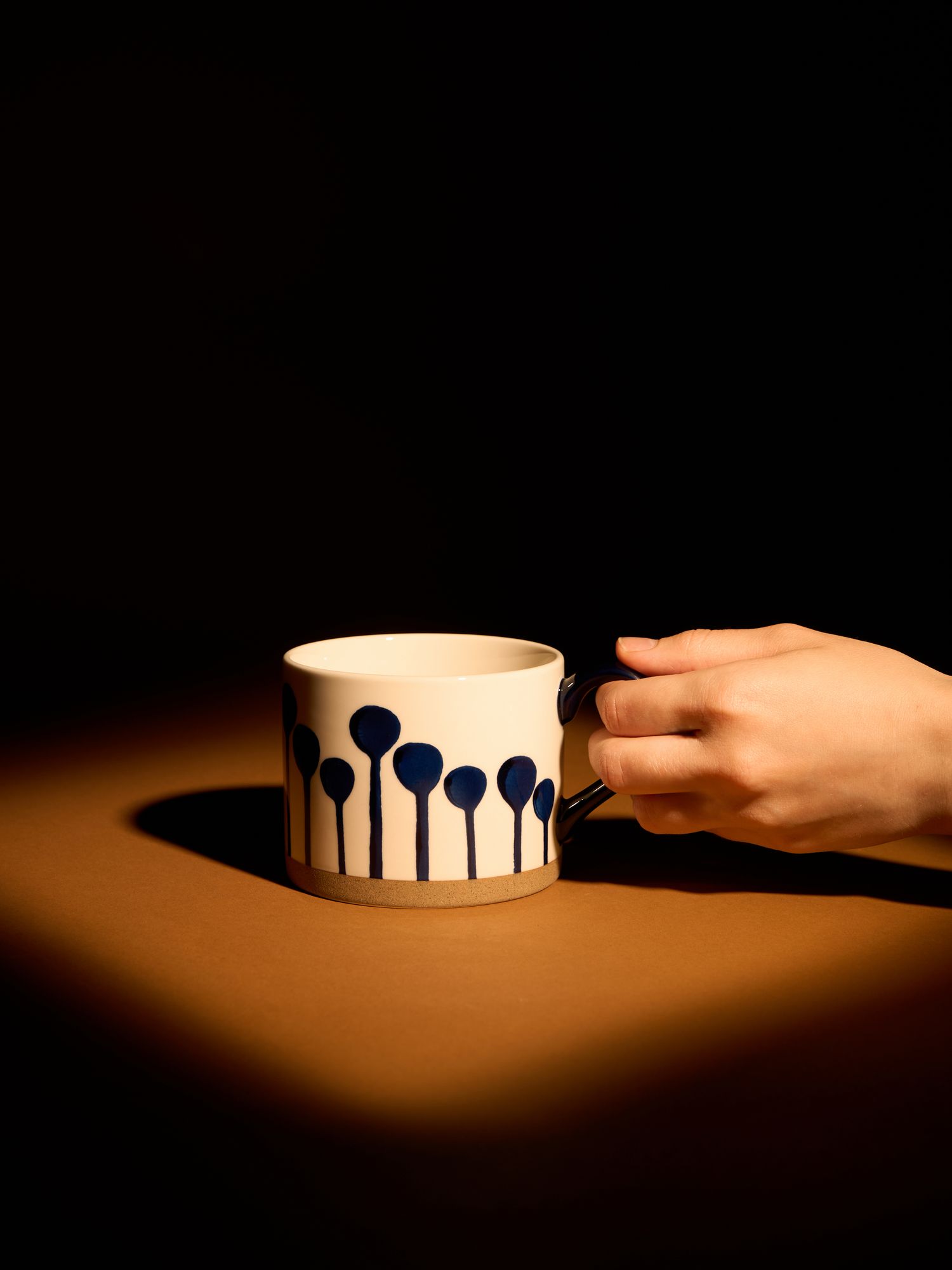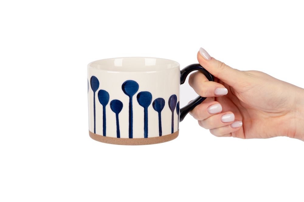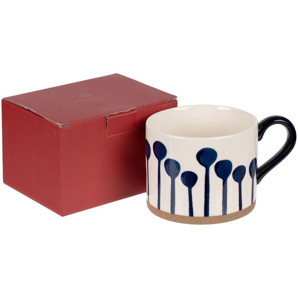 Образ кружки в уютном деревенском стиле завершает как будто необработанный керамический ободок у основания.
