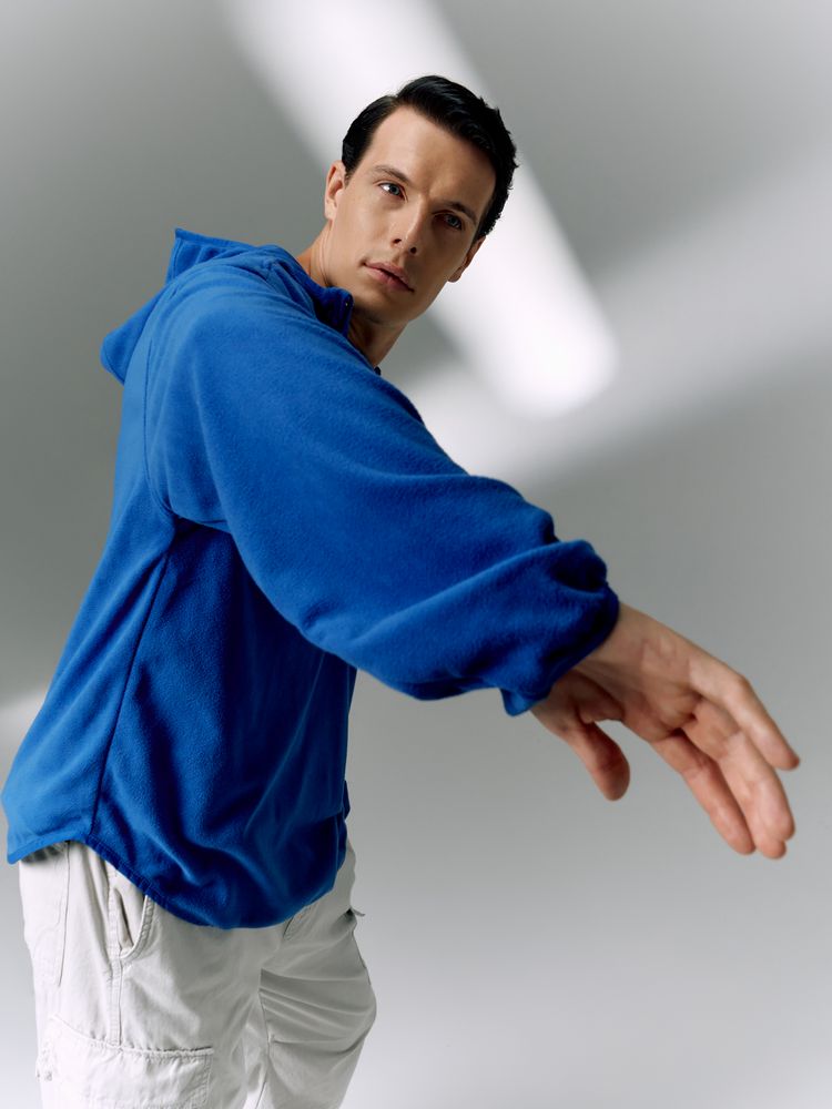 Флисовый анорак унисекс с капюшоном.