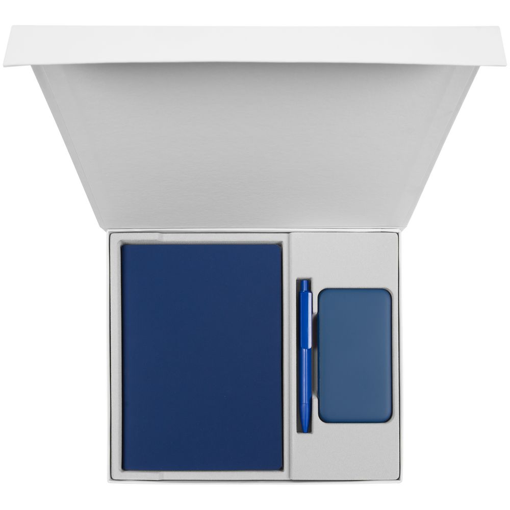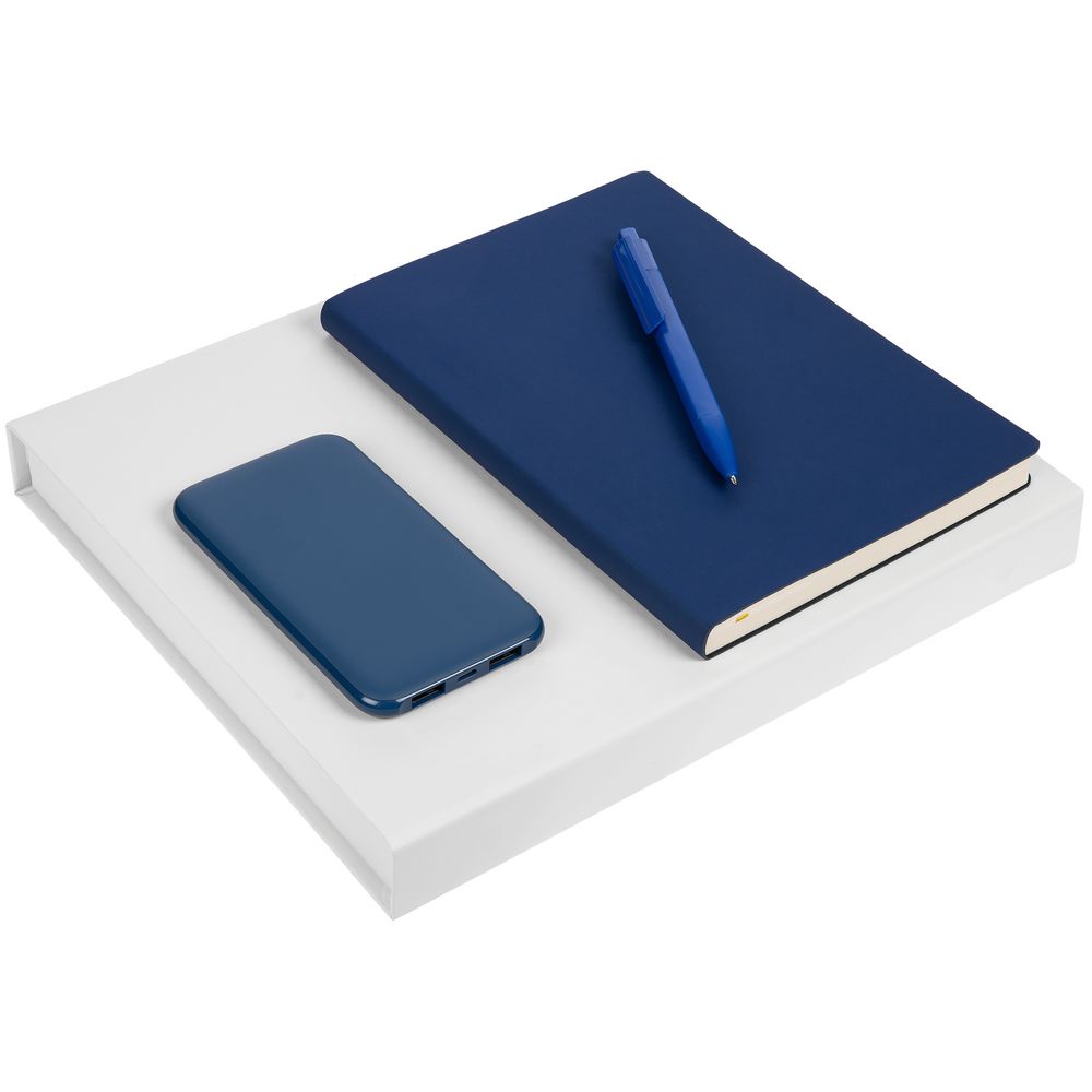 ежедневник - искусственная кожа; ручка - пластик; внешний аккумулятор - покрытие софт-тач, пластик; коробка - переплетный картон, покрытие софт-тач