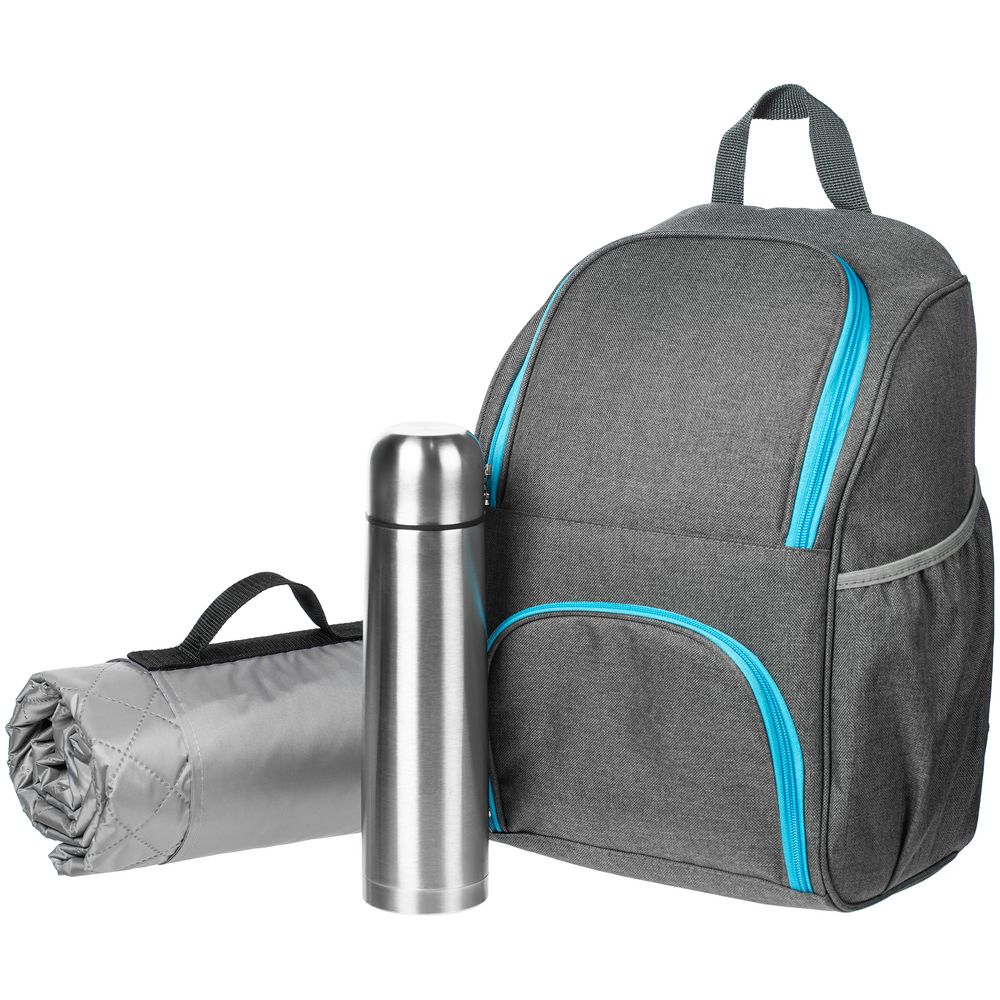 рюкзак - полиэстер, изолон; термос - металл; плед - флис, полиэстер