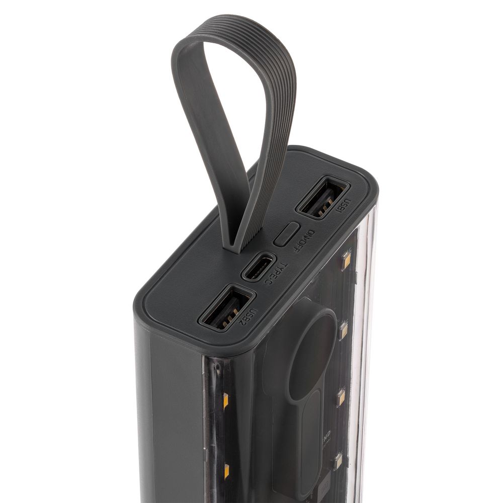 – USB-A (гнездо на корпусе), Type-C, Lightning, Micro USB (кабели): 5 В, 2 A (до 3 А суммарно при зарядке двух устройств) - Время заряда: от 6 до 10 часов (зависит от параметров зарядного устройства)