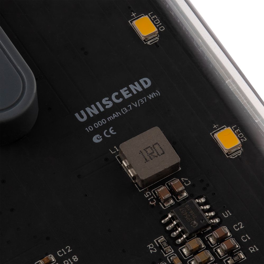 Необычный дизайн коллекции Uniscend Trellis выгодно выделяет новую серию устройств из прозаичного ряда внешних аккумуляторов. Они не поддерживают беспроводную зарядку, зато точно привлекают внимание: под прозрачной панелью хорошо видны электронная начинка и цифровой индикатор оставшегося в аккумуляторе заряда, а мягкая светодиодная подсветка теплого оттенка дополняет технологичный внешний вид.