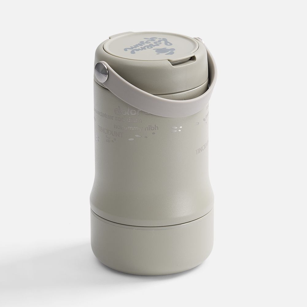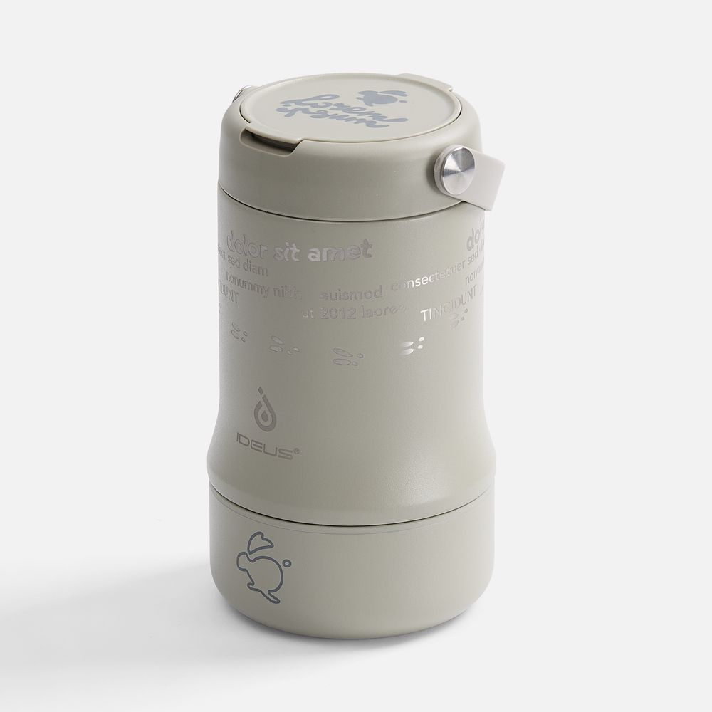 Tabenodo — универсальный многофункциональный термос для работы, школы, похода и путешествия. В компактном корпусе разместились ложка, тарелка и емкость для любимого блюда. Матовая поверхность приятна на ощупь, а силиконовая ручка удобна для переноски.