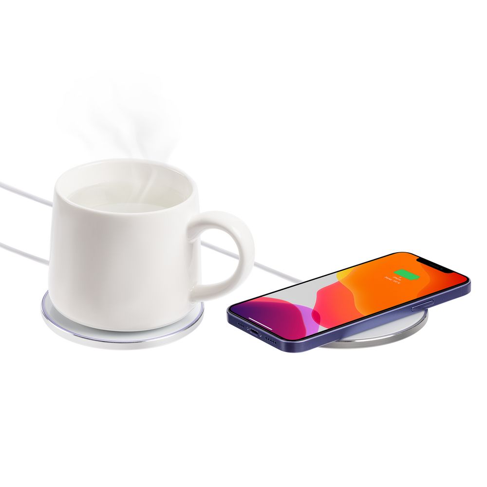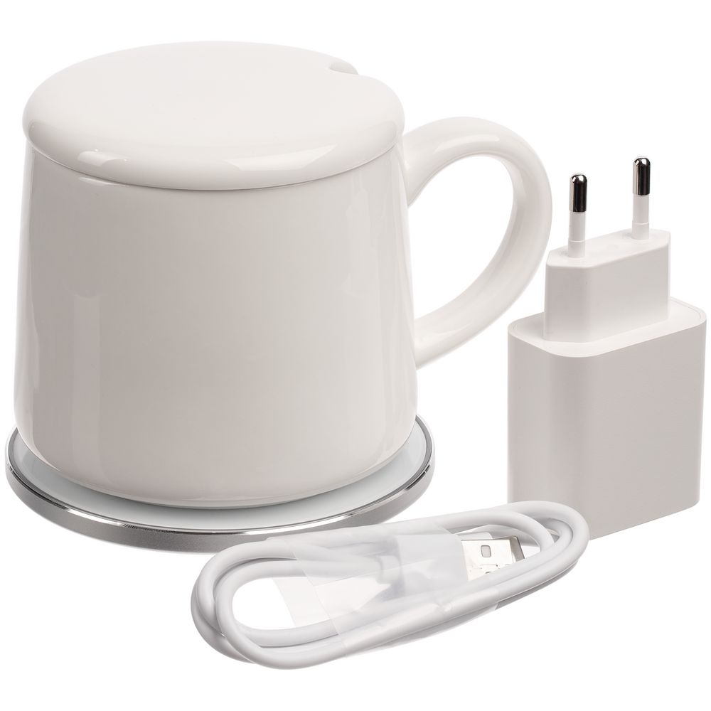 Кружка с подогревом и беспроводной зарядкой Dual Base, ver.2, белая